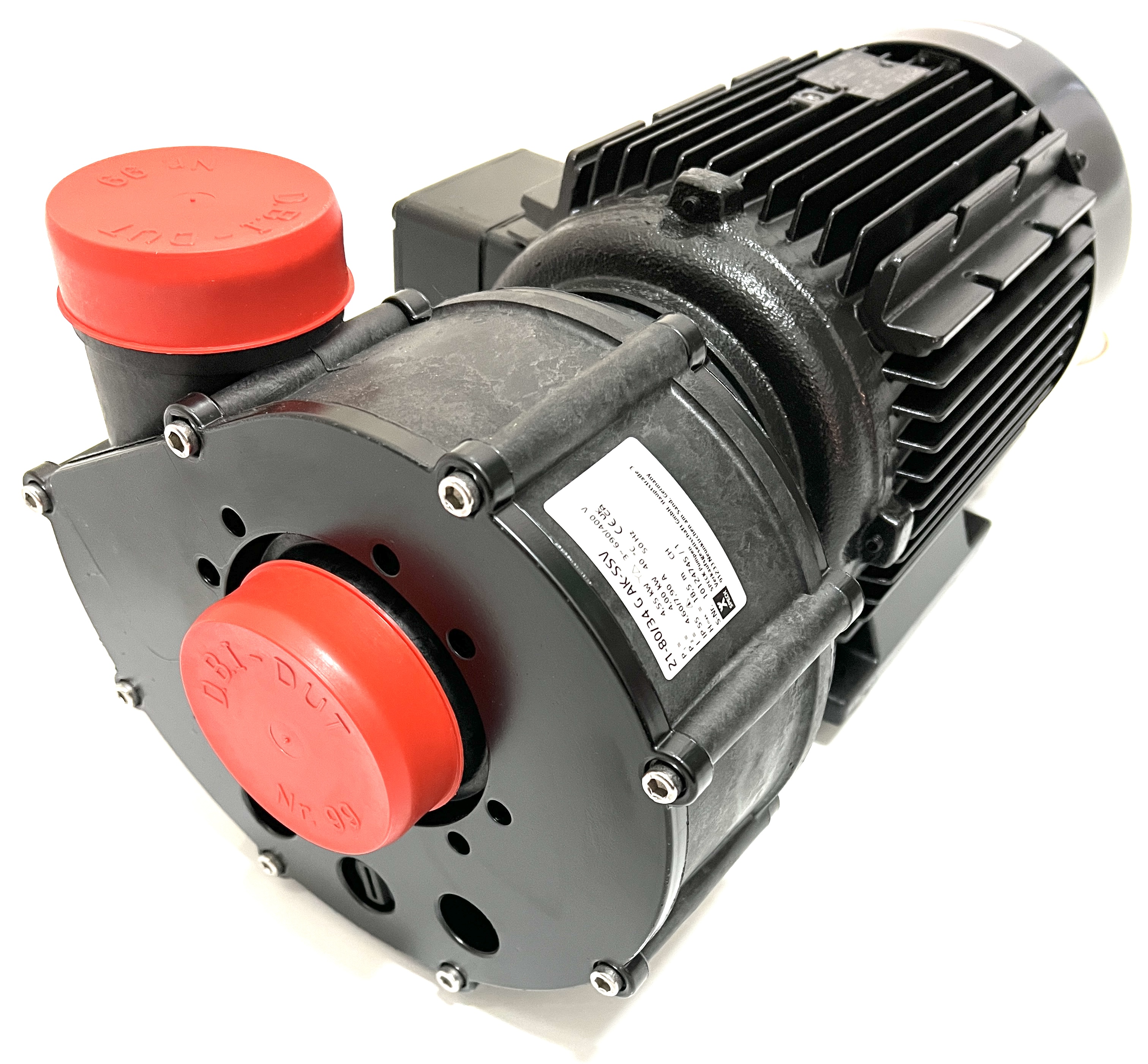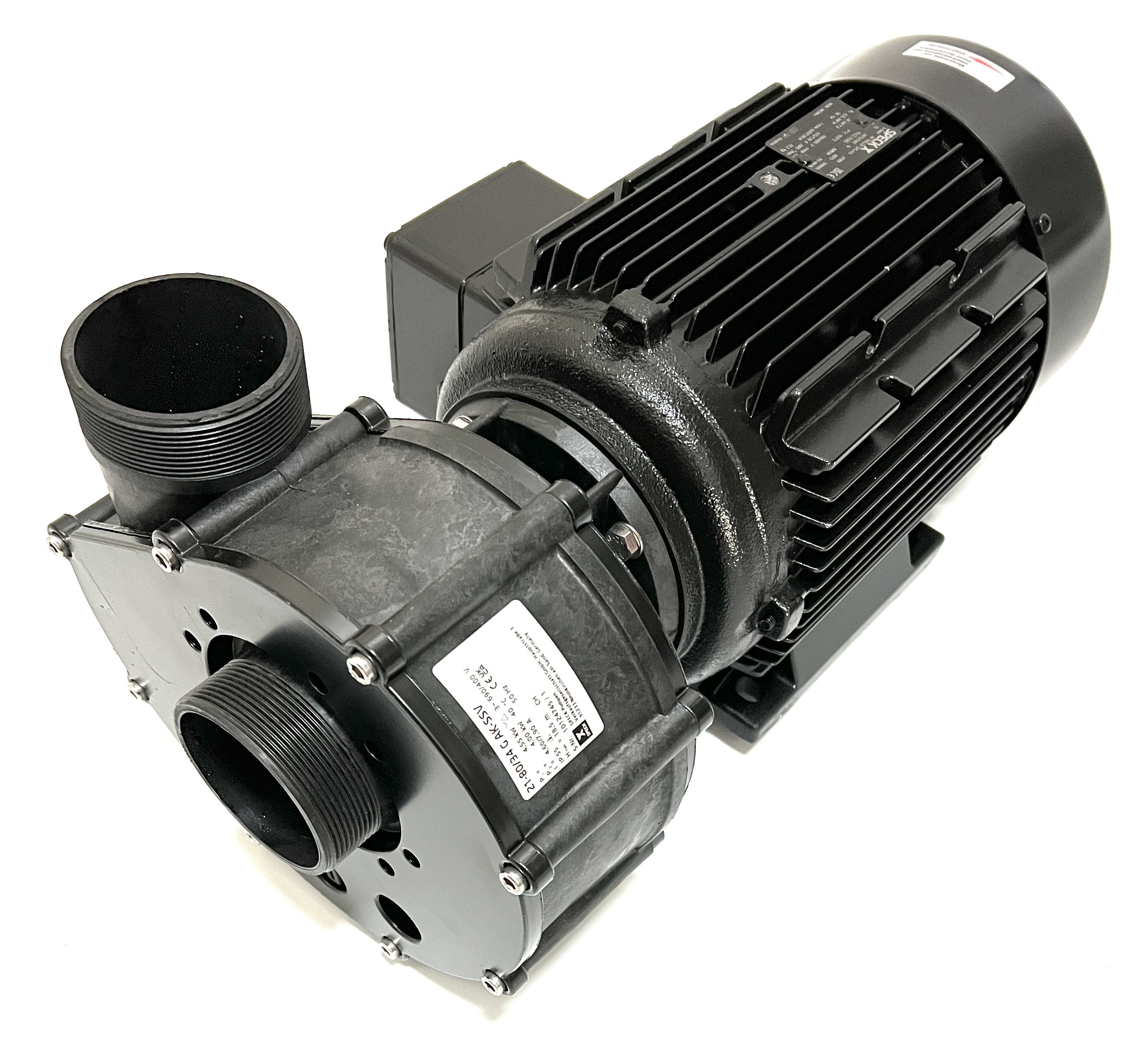 Normalsaugende Umwälzpumpe BADU 21-80/34 G-AK-SSV, Dr., Drehstrom, in Laternenausführung für Schwimmbad- und Industrie-Filteranlagen, Gegenstrom- Schwimmanlagen, Klimaanlagen, Schwimmbad-Attraktionen, Reinigungsgeräte u.a.m., bis 90 m³/h Förderstrom.