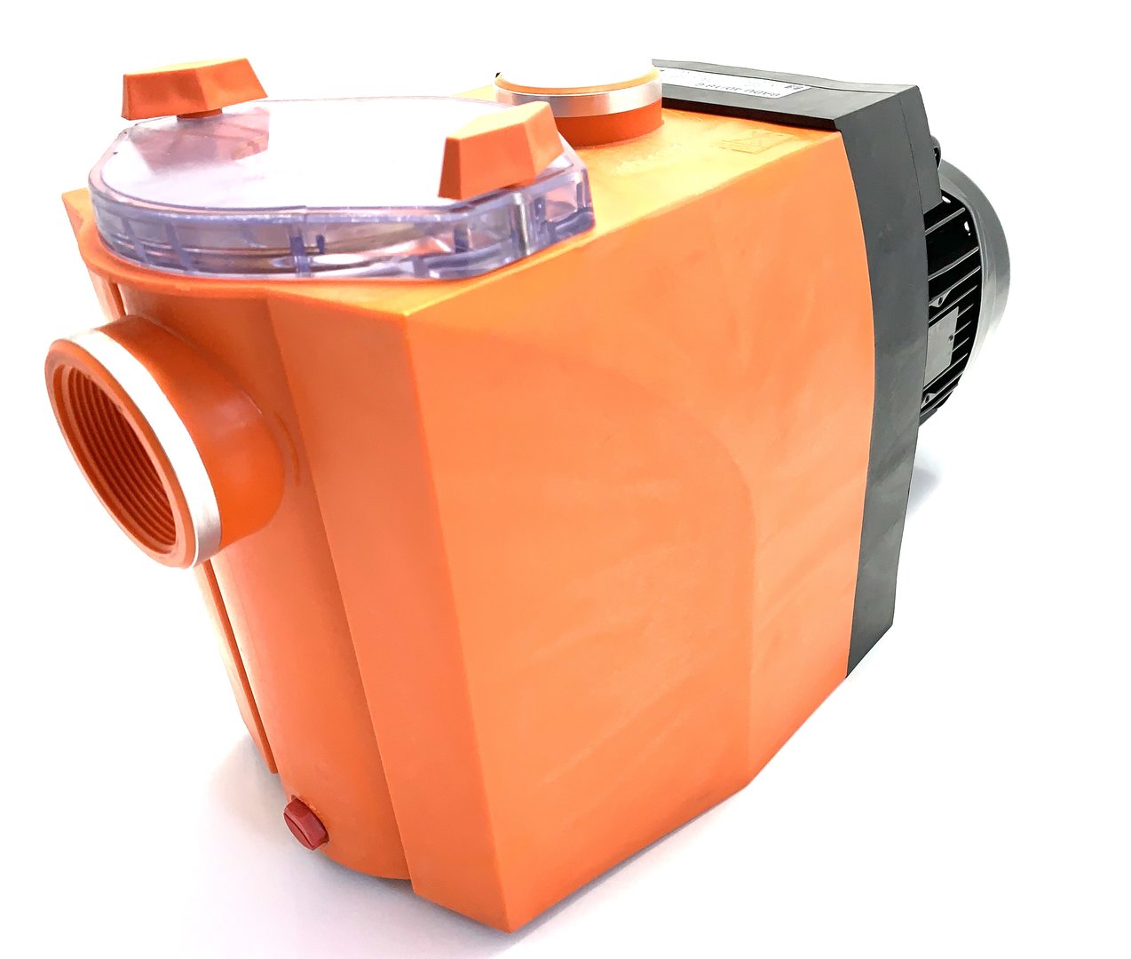 Blockpumpe mit integriertem Fasernfänger. Balg-Gleitringdichtung auf Kunststoff-Laufradnabe montiert. Motor- bzw. Pumpenwelle kommt mit dem Schwimmbadwasser nicht in Berührung! Elektrische Trennung.