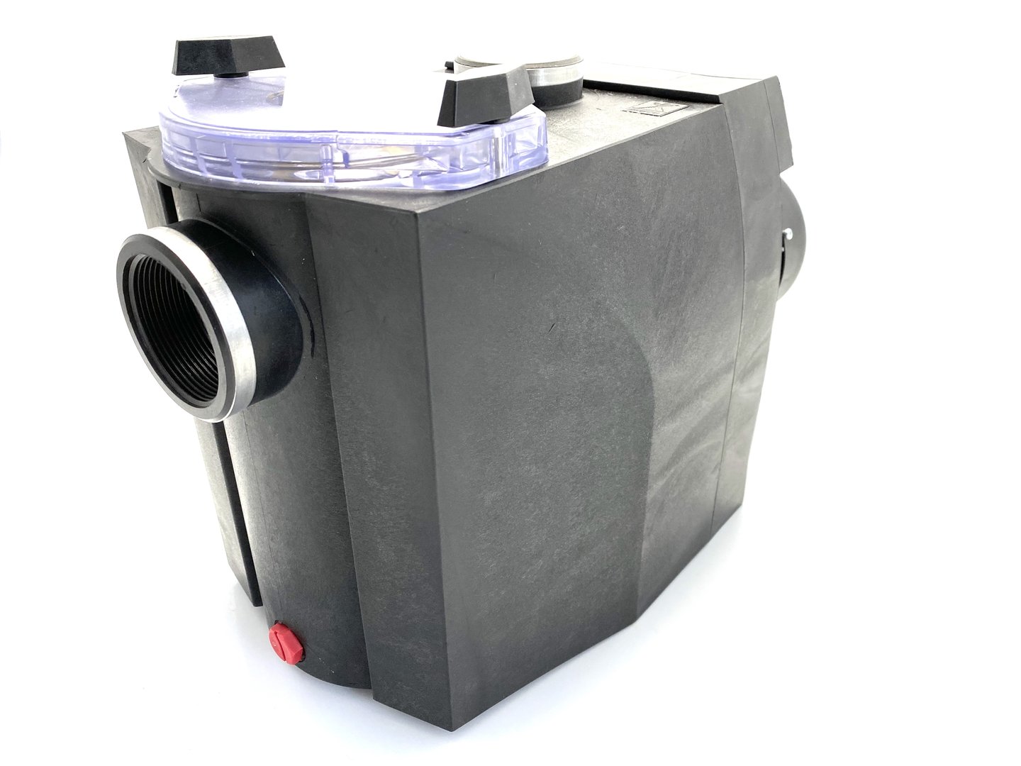 Blockpumpe mit integriertem Fasernfänger. Balg-Gleitringdichtung auf Kunststoff-Laufradnabe montiert. Motor- bzw. Pumpenwelle kommt mit dem Schwimmbadwasser nicht in Berührung! Elektrische Trennung.