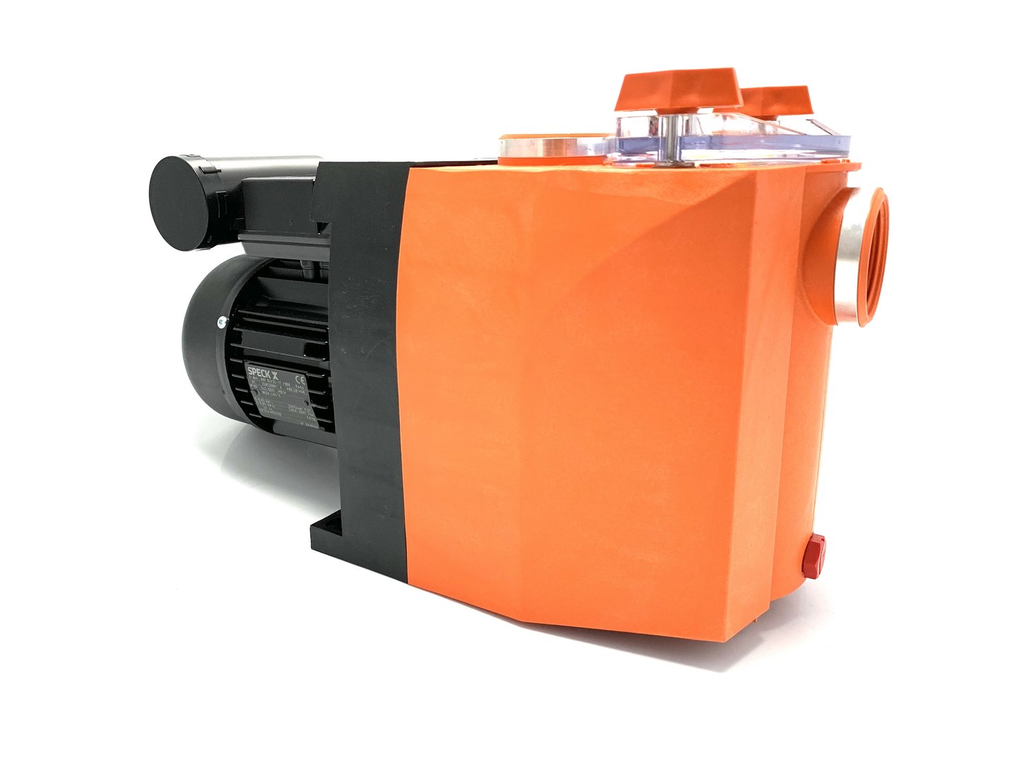Blockpumpe mit integriertem Fasernfänger. Balg-Gleitringdichtung auf Kunststoff-Laufradnabe montiert. Motor- bzw. Pumpenwelle kommt mit dem Schwimmbadwasser nicht in Berührung! Elektrische Trennung.