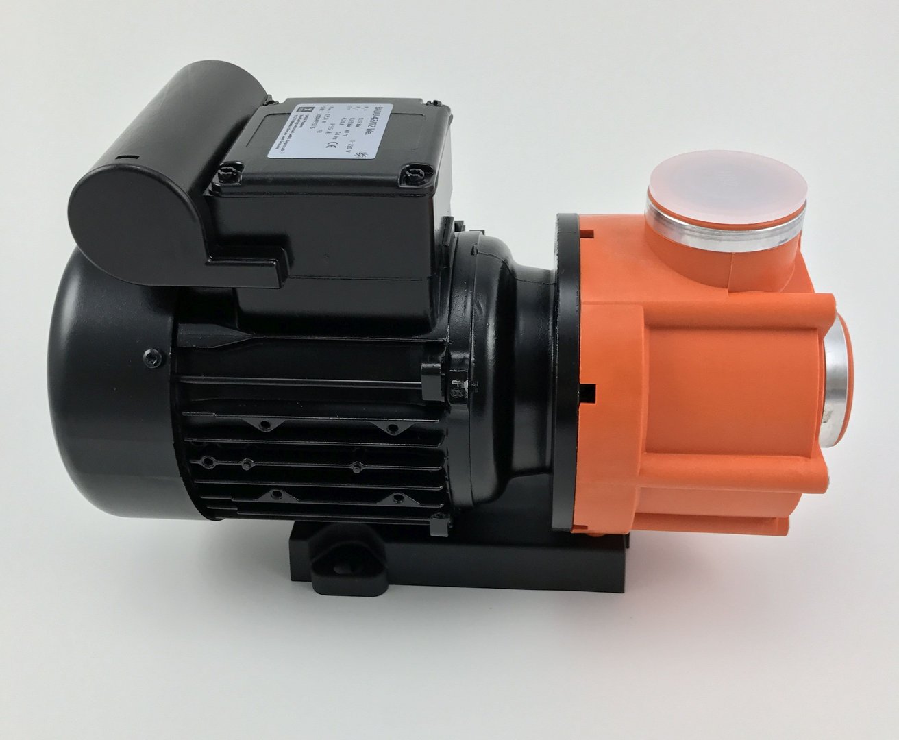 Blockpumpe mit geschlossener Balg-Gleitringdichtung, auf Kunststoff-Laufradnabe montiert. Motor- bzw. Pumpenwelle kommt mit dem Badewasser nicht in Berührung! Elektrische Trennung.