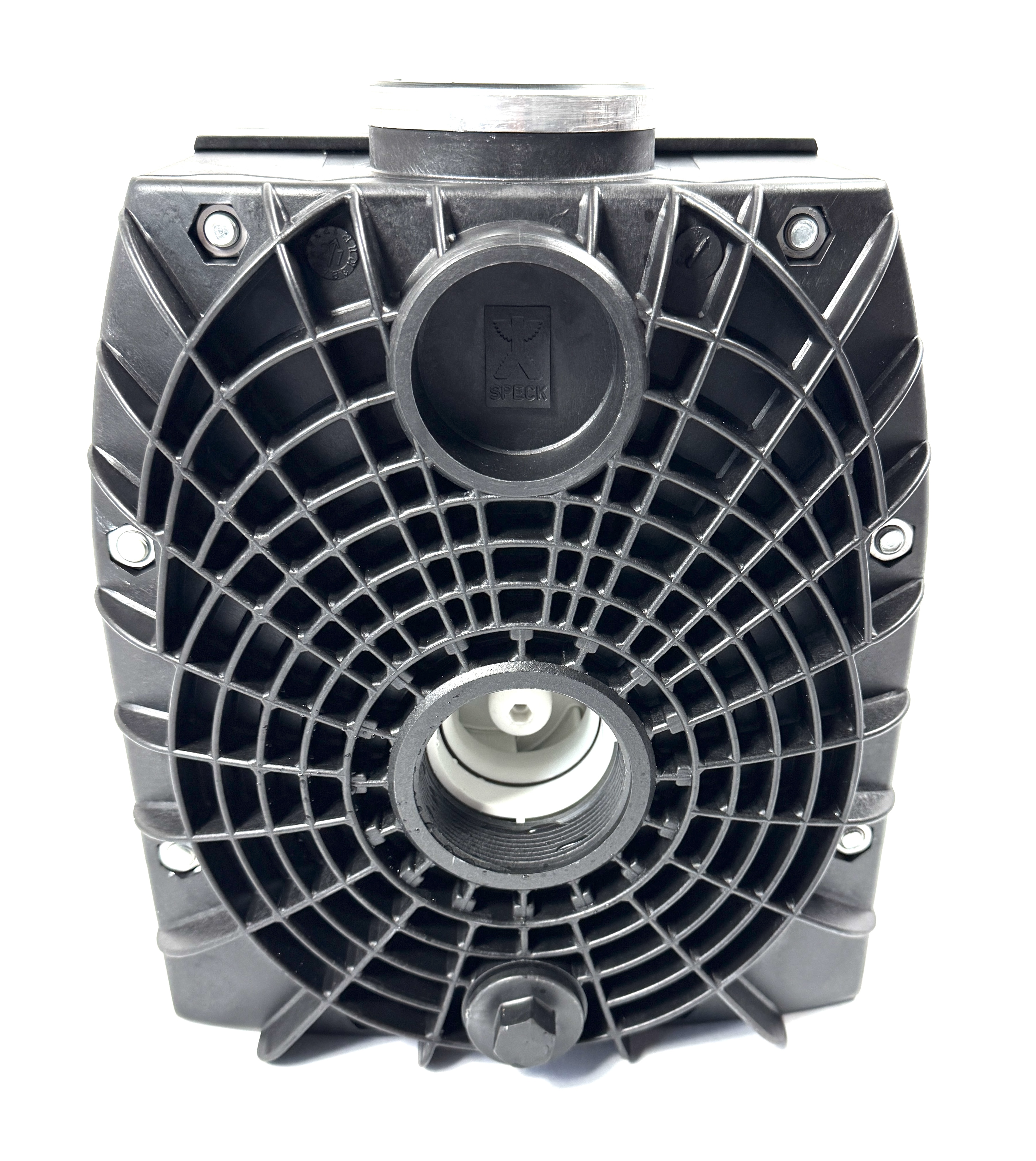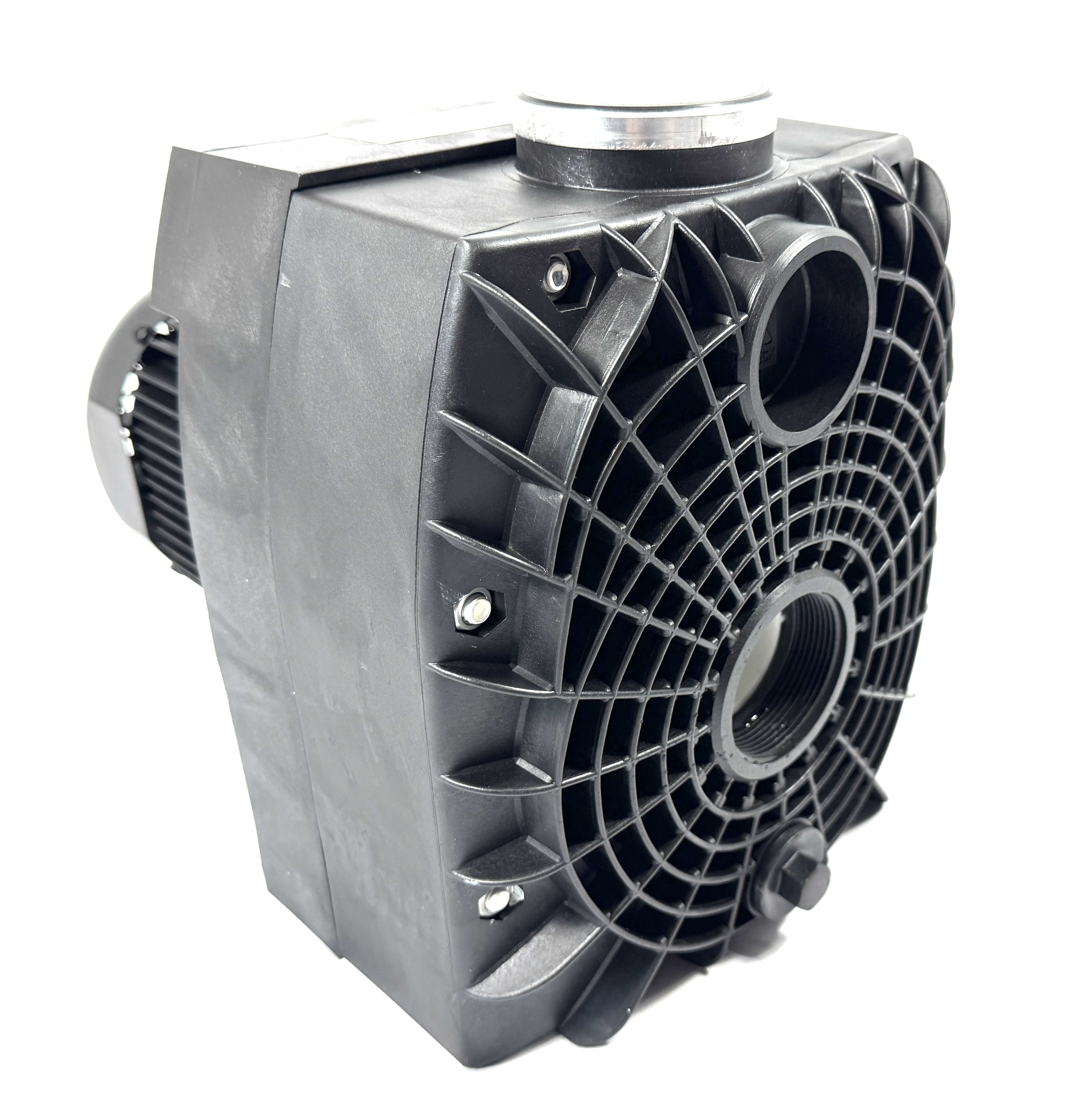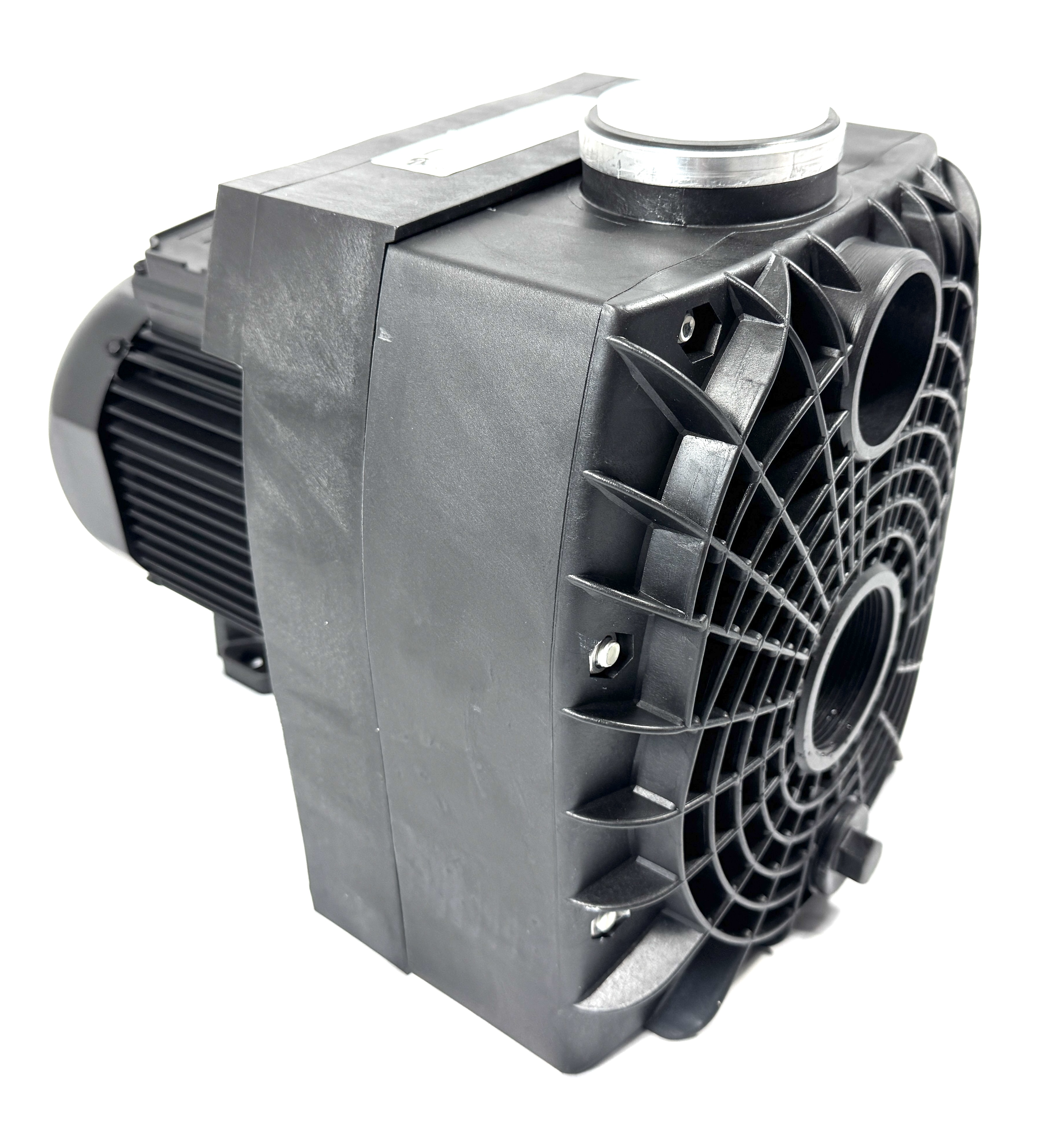Blockpumpe mit geschlossener Balg-Gleitringdichtung, auf Kunststoff-Laufradnabe montiert. Motor- bzw. Pumpenwelle kommt mit dem Badewasser nicht in Berührung! Elektrische Trennung.