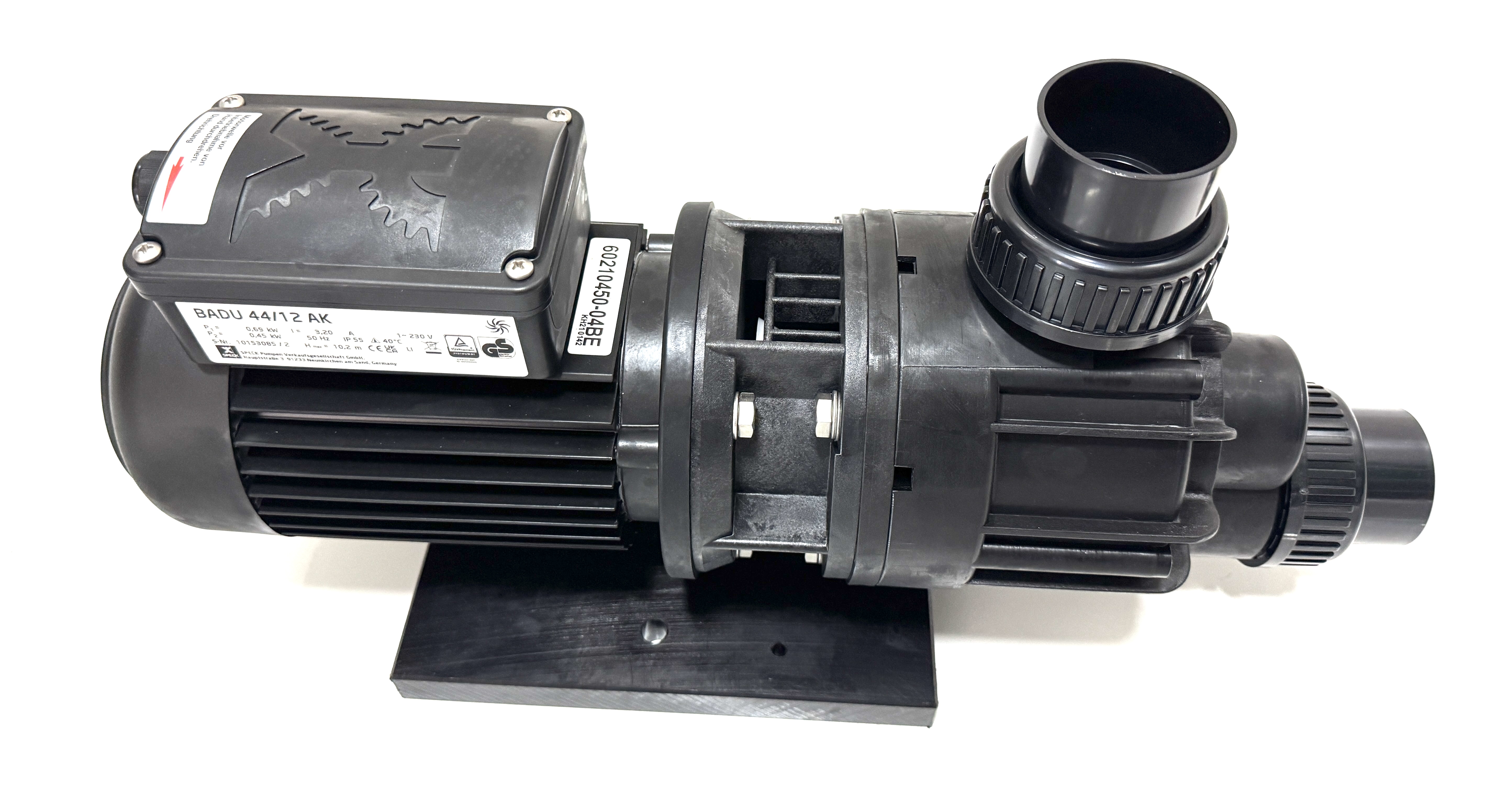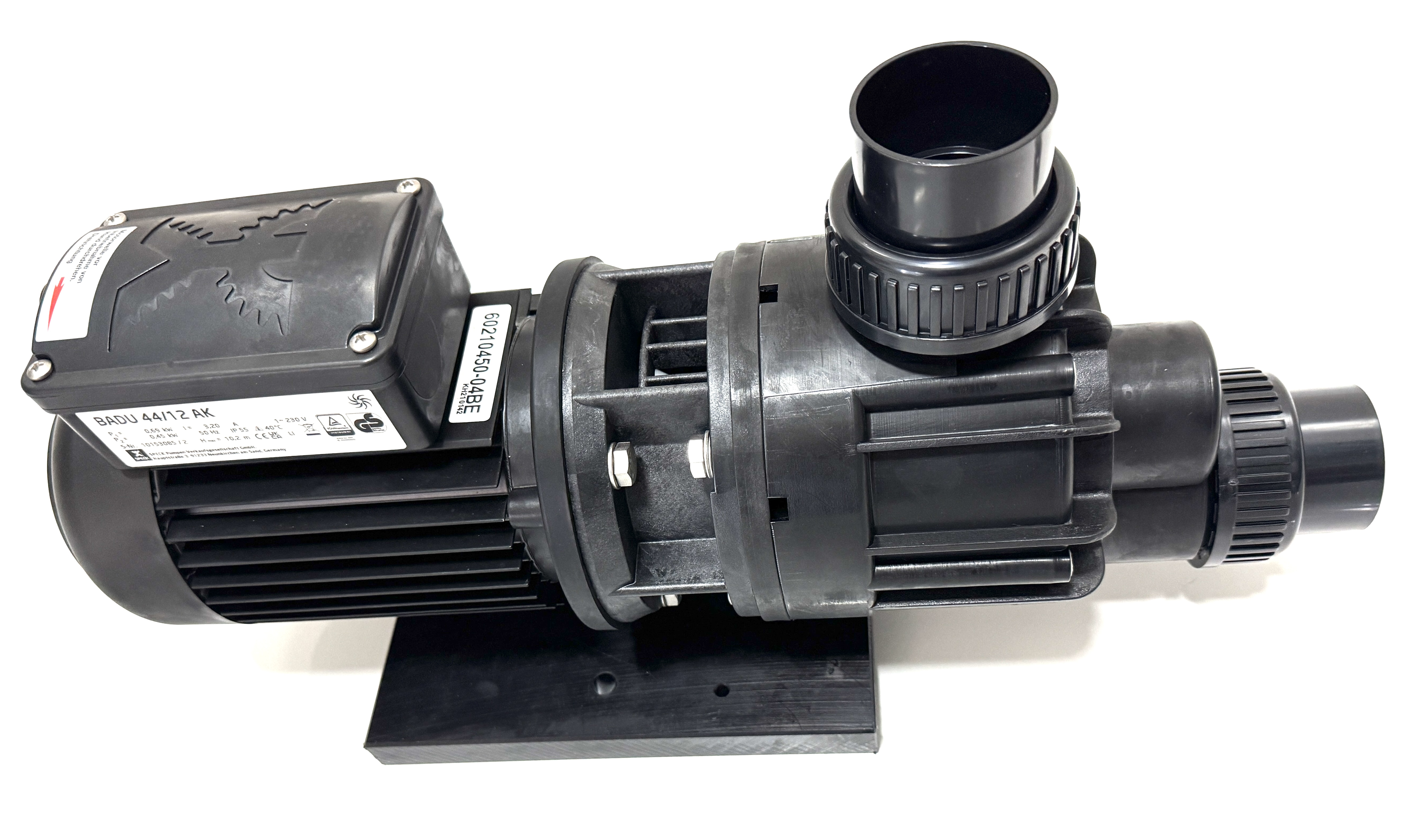 Die medienberührten Kunststoffteile der BADU 44/12-AK-SSV sind überwiegend aus Polypropylen PP hergestellt und haben damit eine hervorragende Korrosionsbeständigkeit gegenüber dem Schwimmbadwasser und den zur Wasserpflege üblichen Wasserbehandlungsmitteln.