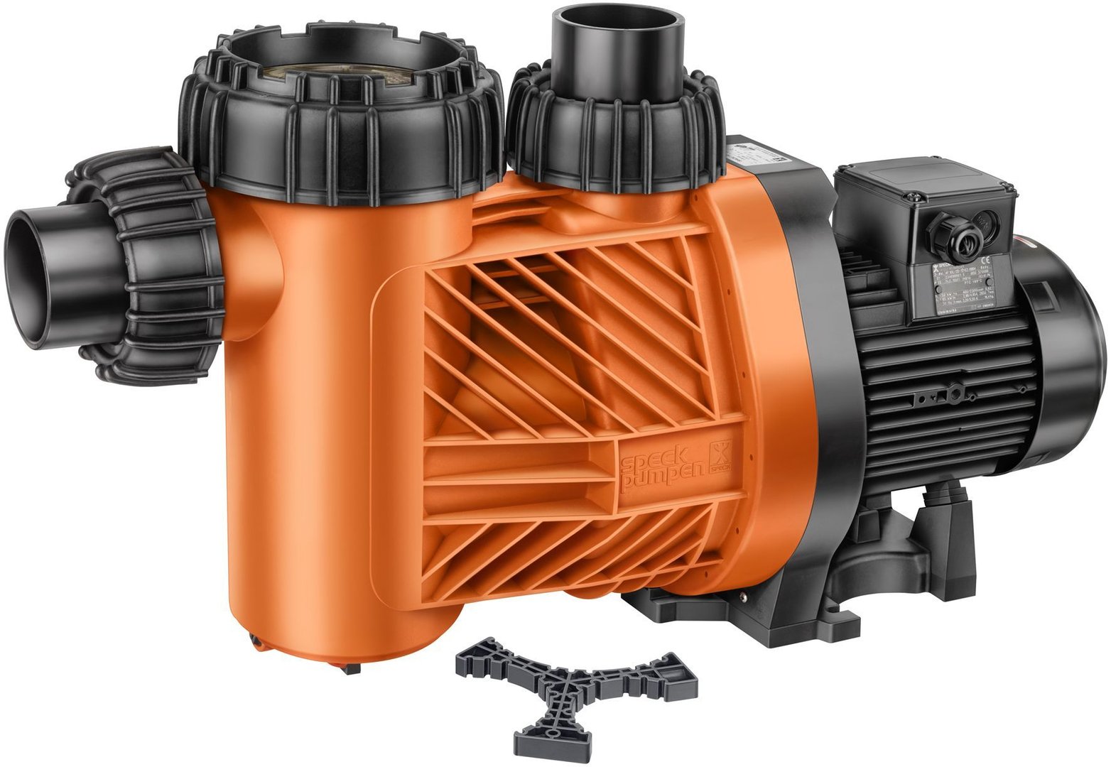 Blockpumpe mit integriertem Fasernfänger. Balg-Gleitringdichtung auf Kunststoff-Laufradnabe montiert. Motor- bzw. Pumpenwelle kommt mit dem Schwimmbadwasser nicht in Berührung! Elektrische Trennung.