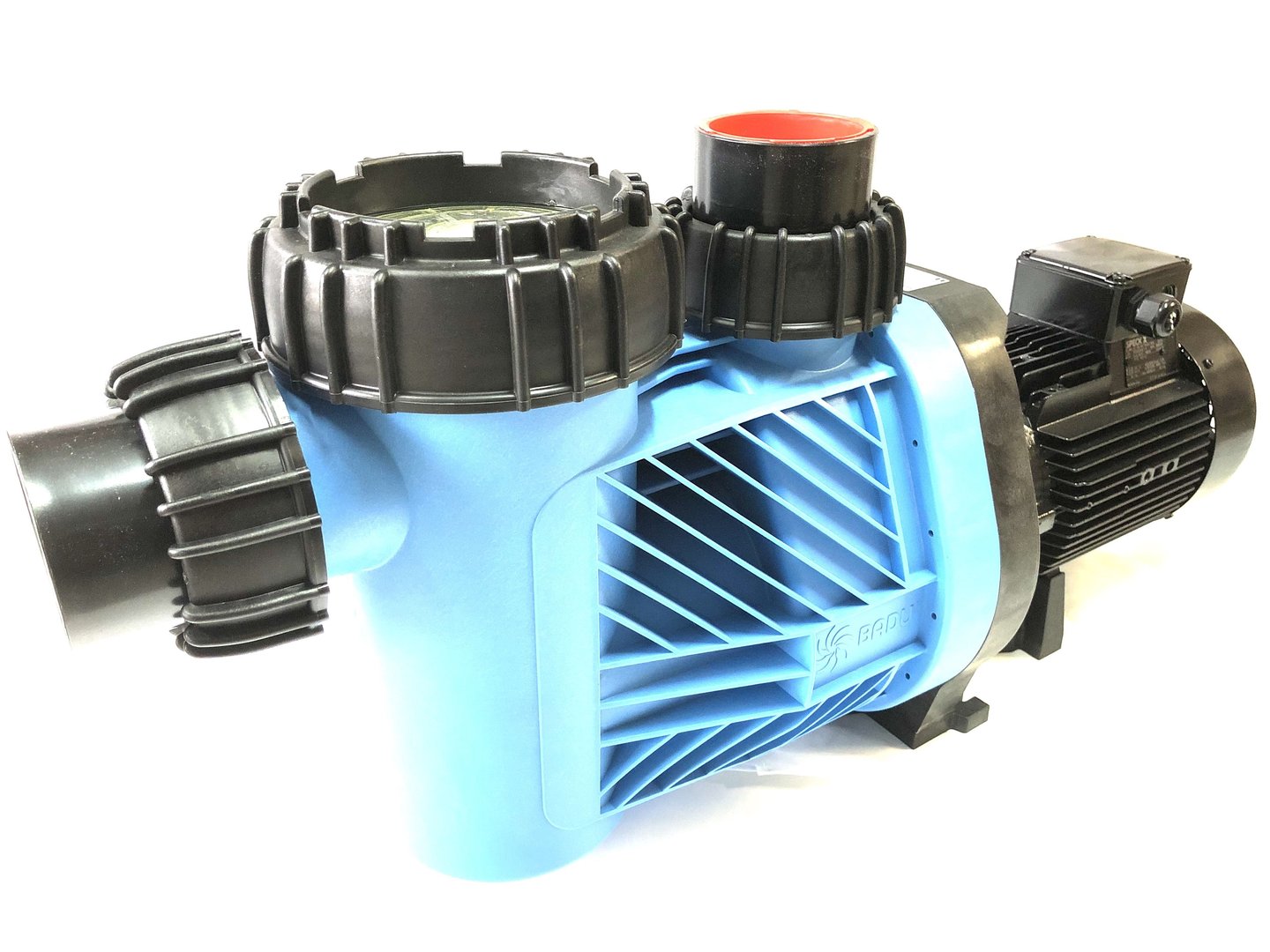 Selbstansaugende Filterumwälzpumpe BADU Prime 48-AK-SSV, Dr. in Laternenausführung, in Drehstromausführung, für den Einsatz mit diversen Salzwässern und Problemmedien, ersetzt das Vorgängermodell BADU 90/48-AK-SSV, Dr. 3~ Y/Δ 400/230 Volt Gleitringdichtung SIC/SIC + VITON H max. = 21,8 m Q max. = 51,0 m³/h techQ: 48 m³/h techH: 8 m WS Motorleistung: 2.60 kW Saug/Druck(d): 90mm/90mm In jeder Hinsicht das Top-Modell aus glasfaserverstärktem Material. Formvollendet und selbstansaugend für die Schwimmbadwasser- Umwälzung in Filteranlagen mit einer Leistung von 25 m3/h bis 48 m3/h. Diese Pumpen erfüllen höchste Ansprüche durch beste Qualität und Verarbeitung. Konstruktive Merkmale: Korrosionsbeständig – durch hochwertigen, glasfaserverstärkten Kunststoff. Unempfindlich – gegen Verunreinigungen, da mit großem Saugsieb. Selbstansaugend – problemloser Filterbetrieb und Anschluss von Schwimmbad-Bodenreinigern. Einsatzgebiet: Thermalwässer, Thermalsole, Seewasseraquarien mit künstlich aufbereitetem Salzwasser, Pökelanlagen, und diverse Problemmedien nach Überprüfung der Bestandteile und Konzentration. Grundsätzlich ist bei Bestellung immer das Medium genau anzugeben, damit die Beständigkeit der Pumpen geprüft werden kann. Ausführung: Die Pumpe entspricht der Standardvariante, jedoch ist durch eine Zwischenlaterne der Dichtungsraum nicht direkt am A-seitigen Motorlager angebaut, sondern zusätzlich mit einem Zwischenraum und einer Labyrinthscheibe vom Motor getrennt. Eventuell austretendes Medium und auskristallisierende Mineralien oder Salze kommen somit nicht mit dem Motor und dem Lager in Verbindung. Hierdurch wird eine erheblich längere Betriebszeit gegenüber Standardpumpen für diese Einsatzgebiete gewährleistet. Aufstellbar oberhalb oder unterhalb des Wasserniveaus jeweils max. 3 m. Ausführung: Elektrische Trennung. Fasernfängerinhalt: ca. 3 l Saugsiebmaschenweite: ca. 3,2 x 2,6 mm Werkstoffe: Pumpengehäuse: PP GF 30 Zwischengehäuse: PP TV 40 Dichtungsgehäuse: PP TV 40 Leitschaufeleinsatz: PP GF 30 Laufrad: PP GF 30 Saugsieb: PP Deckel: PC, transparent / PA 66 GF 30 Laterne: PPE GF 30 Gleitringdichtung: SiC / SiC / Viton Schrauben: Edelstahl 1.4301 Abdichtung: Viton TECHNISCHE DATEN Herstellerseite (Abb. ähnlich)