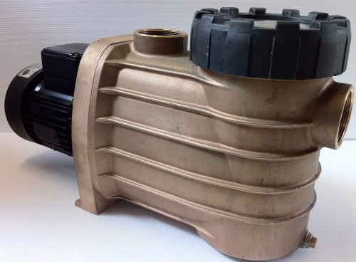 Selbstansaugende, korrosionsbeständige Bronze Umwälzpumpe BADU Bronze 11 Dr. in Drehstromausführung, für Beckenvolumen von 30 - 60 m³.
