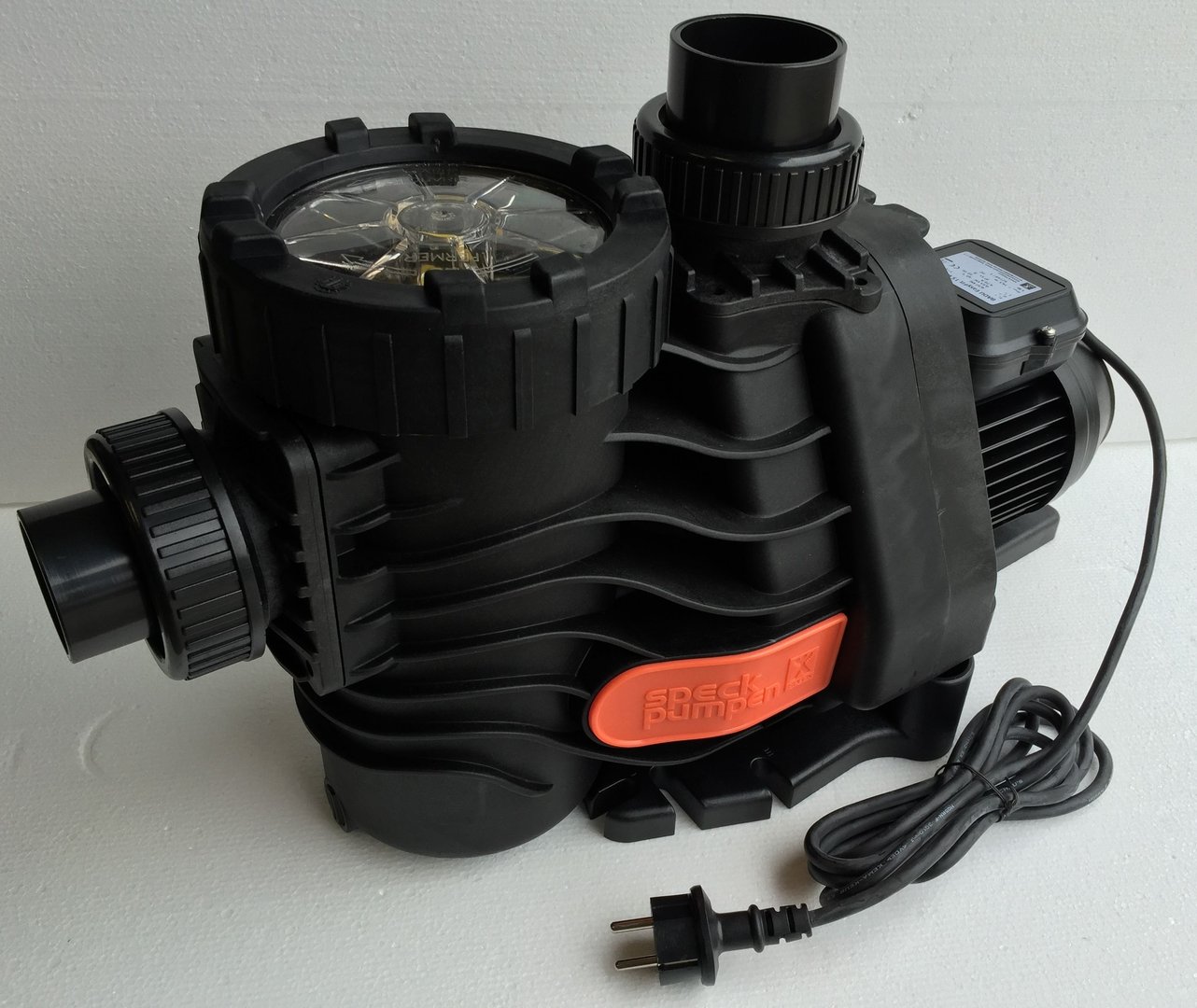 Blockpumpe mit integriertem Fasernfänger. Balg-Gleitringdichtung auf Kunststoff-Laufradnabe montiert. Motor- bzw. Pumpenwelle kommt mit dem Schwimmbadwasser nicht in Berührung! Elektrische Trennung.
