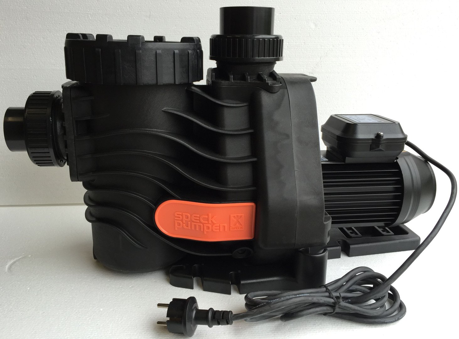 Blockpumpe mit integriertem Fasernfänger. Balg-Gleitringdichtung auf Kunststoff-Laufradnabe montiert. Motor- bzw. Pumpenwelle kommt mit dem Schwimmbadwasser nicht in Berührung! Elektrische Trennung.