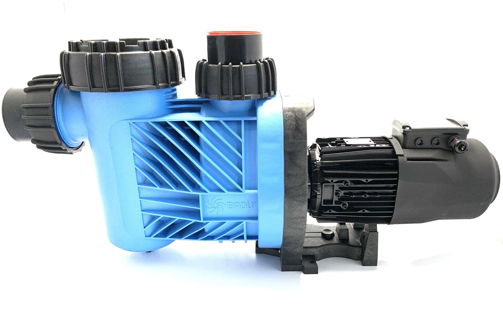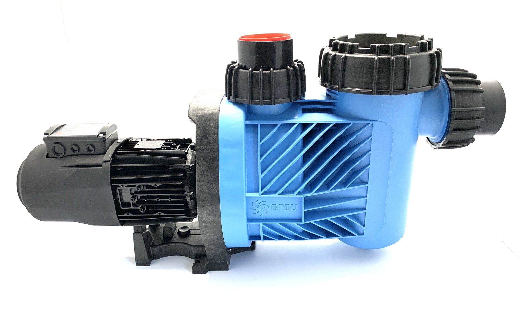 Die Kunststoffpumpen der Baureihe BADU Eco Motion in Wechselstromausführung sind zur Umwälzung des Schwimmbadwassers in Kombination mit einer entsprechenden Filteranlage konzipiert. Die medienberührten Kunststoffteile sind überwiegend aus glasfaserverstärktem Polypropylen PP GF 30 hergestellt und haben damit eine hervorragende Korrosionsbeständigkeit gegenüber dem Schwimmbadwasser und den zur Wasserpflege üblichen Wasserbehandlungsmitteln. Im Pumpengehäuse sind keine Inserts enthalten. Damit ist dieses recyclingfähig.