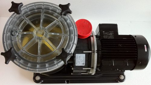 Die Motorwelle dient gleichzeitig als Pumpenwelle, auf der das Laufrad befestigt ist. Als Wellendichtung dient eine Balg-Gleitringdichtung, die auf einer Laufradnabe aus Kunststoff sitzt. Hierdurch ist eine sichere Trennung zwischen Schwimmbadwasser und Elektromotor gegeben. Diese Nabe dient als Wellenschutzhülse.