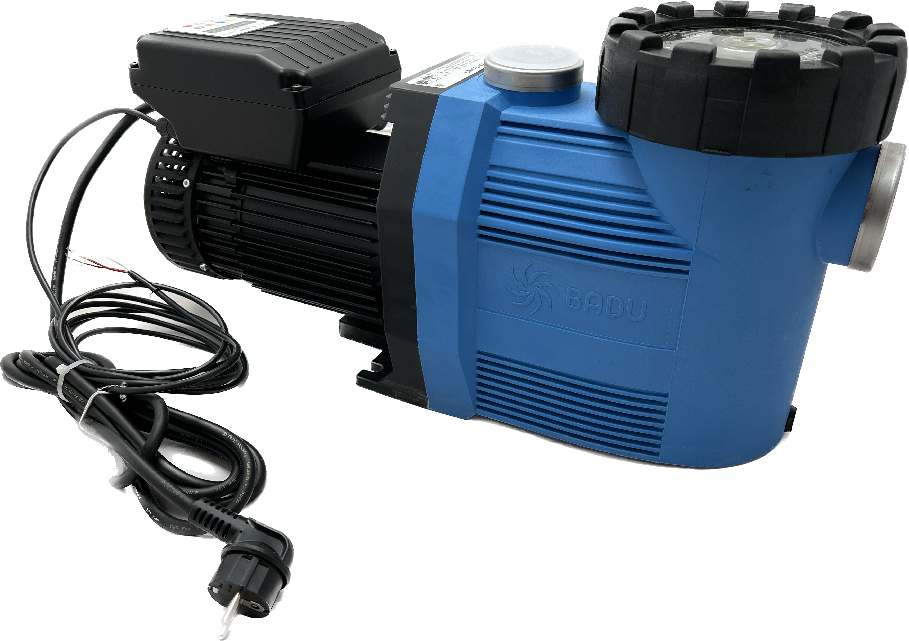 Drehzahlgeregelte, selbstansaugende Filterumwälzpumpe BADU Eco Touch-Pro II für Beckenvolumen von ca.30-90 m³. Inklusive Anschlusskabel mit Schukostecker, ersetzt das Vorgängermodell BADU Eco Touch-Pro 1~230 V Hmax: 15 m (2830 U/min) Qmax: 29 m³/h (2830 U/min) techQ: 10 m³/h techH: 6 m WS Poolgröße: 30 - 90 m³ Drehzahl: 1000 - 2830 U/min. Motorleistung: 0.28 kW Leistungsaufnahme P1: 0,08 - 1,05 kW Leistungsabgabe P2: 0,03 - 0,75 kW Nennstrom: 0,60 - 6,50 A Saug / Druck(d): 63/50 Gewicht: 9,0 kg Beschreibung: Die Kunststoffpumpen der Baureihe BADU Eco Touch-Pro II aus der patentierten und umweltorientierten Green-line Reihe, sind zur Umwälzung des Schwimmbadwassers in Kombination mit einer entsprechenden Filteranlage konzipiert. Die medienberührten Kunststoffteile sind überwiegend aus Polypropylen PP hergestellt, das Laufrad aus PA, Sie haben damit eine hervorragende Korrosionsbeständigkeit gegenüber dem Schwimmbadwasser und den zur Wasserpflege üblichen Wasserbehandlungsmitteln. Im Pumpengehäuse sind keine Inserts enthalten, somit ist dieses recyclingfähig. Die Motorwelle dient gleichzeitig als Pumpenwelle, auf der das Laufrad befestigt ist. Als Wellendichtung dient eine Balg-Gleitringdichtung, die auf der Laufradnabe aus Kunststoff sitzt. Hierdurch ist eine sichere Trennung zwischen Schwimmbadwasser und Elektromotor gegeben. Durch die Blockbauweise haben die Pumpen einen geringen Platzbedarf. Sie werden durch Dreh- oder Wechselstrommotoren angetrieben. Im Pumpengehäuse ist ein Saugsieb (143) integriert, das gröbere Verunreinigungen aus dem Pumpeninneren fernhält. Die integrierte Steuerung mit LED-Display zur Anzeige der aktuellen Drehzahl der Pumpe und das Bedienfeld zur Programmierung und Ansteuerung der einzelnen Drehzahlen und Veränderung der Ansaugzeit und Ansaugdrehzahl ermöglichen eine komfortable und individuelle Programmierung der Drehzahl in 50er Schritten von 1000 bis 2830 U/min. Die 3 vom Werk eingestellten Drehzahlen 2000, 2400 und 2830 min-1 sind standardmäßig konfiguriert und lassen sich manuell anpassen. Zusätzlich verfügt die Steuerung über die Möglichkeit einer potentialfreien Ansteuerung und ermöglicht somit eine Vernetzung mit der Filtersteuerung. Der Betrieb des Motors ist sowohl bei 230 V / 50 Hz als auch 230 V / 60 Hz möglich. Einsatzgebiet: Schwimmbadwasser-Umwälzung in Filteranlagen, aufstellbar oberhalb oder unterhalb des Wasserniveaus jeweils max. 3 m. Ausführung: Blockpumpe mit integriertem Fasernfänger. Balg-Gleitringdichtung auf Kunststoff-Laufradnabe montiert. Motor- bzw. Pumpenwelle kommt mit dem Schwimmbadwasser nicht in Berührung! Elektrische Trennung. Fasernfängerinhalt: ca. 3 l Saugsiebmaschenweite: ca. 3,2 x 2,6 mm Werkstoffe: Pumpengehäuse: PP TV 20 Zwischengehäuse: PP TV 40 Dichtungsgehäuse: PP TV 40 Leitschaufeleinsatz: PA 6 GF 15 Laufrad: PA 66 GF 30 Saugsieb: PP Deckel: PC, transparent/PA 66 GF 30 Gleitringdichtung: Kohle / Keramik / NBR Schrauben: Edelstahl, verzinkt Die Pumpen können in der abgebildeten Ausführung für Schwimmbeckenwasser bis zu einer Gesamtsalzkonzentration von 0,5% (entsprechend 5 g/l) eingesetzt werden. Bei höheren Salzkonzentrationen bitten wir Sie, Rücksprache mit uns zu halten. Auch in AK-Version erhältlich Optionale Möglichkeiten der Ansteuerung: Für zusätzliches zeitabhängiges Schalten kann die Pumpensteuerung BADU Eco Touch II oder BADU Eco Logic verwendet werden. TECHNISCHE DATEN Herstellerseite