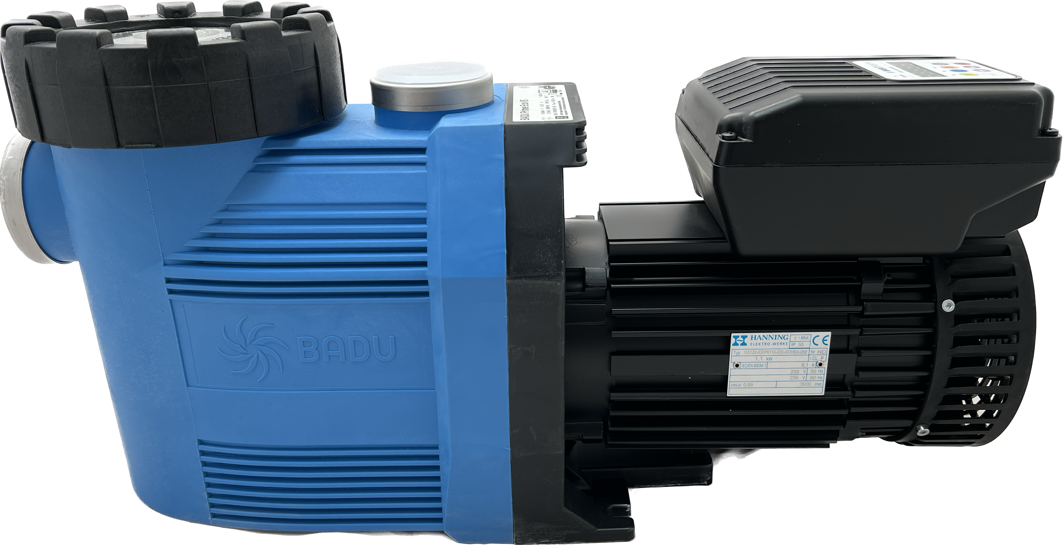 Blockpumpe mit integriertem Fasernfänger. Balg-Gleitringdichtung auf Kunststoff-Laufradnabe montiert. Motor- bzw. Pumpenwelle kommt mit dem Schwimmbadwasser nicht in Berührung! Elektrische Trennung.