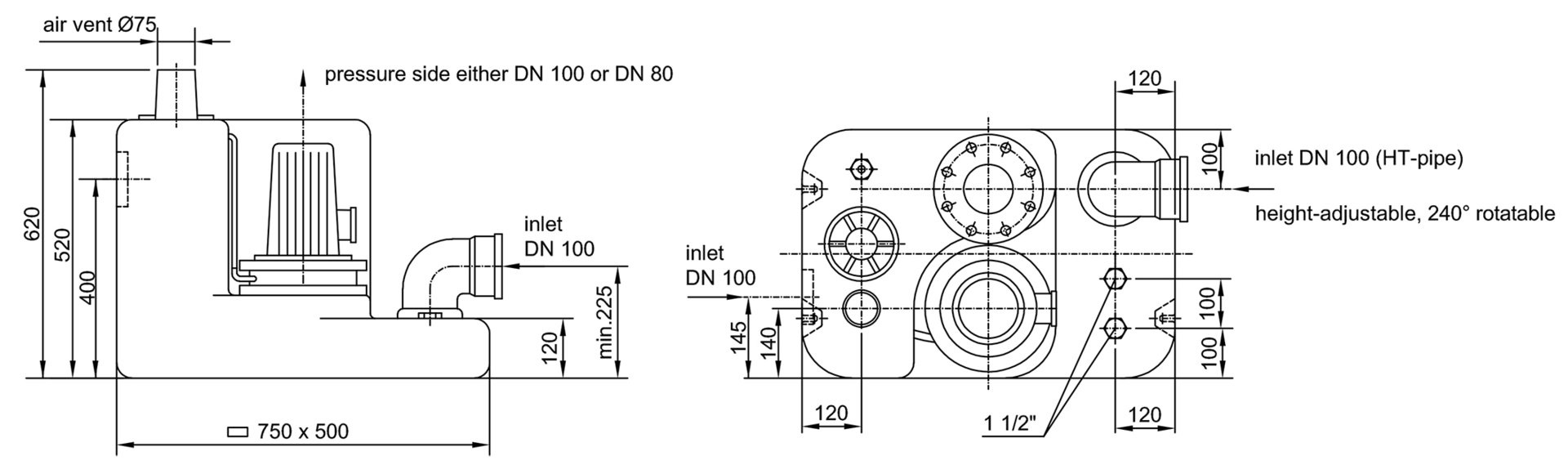 - Übergangsflanschstück DN 100 für Druckleitung (optional DN 80)