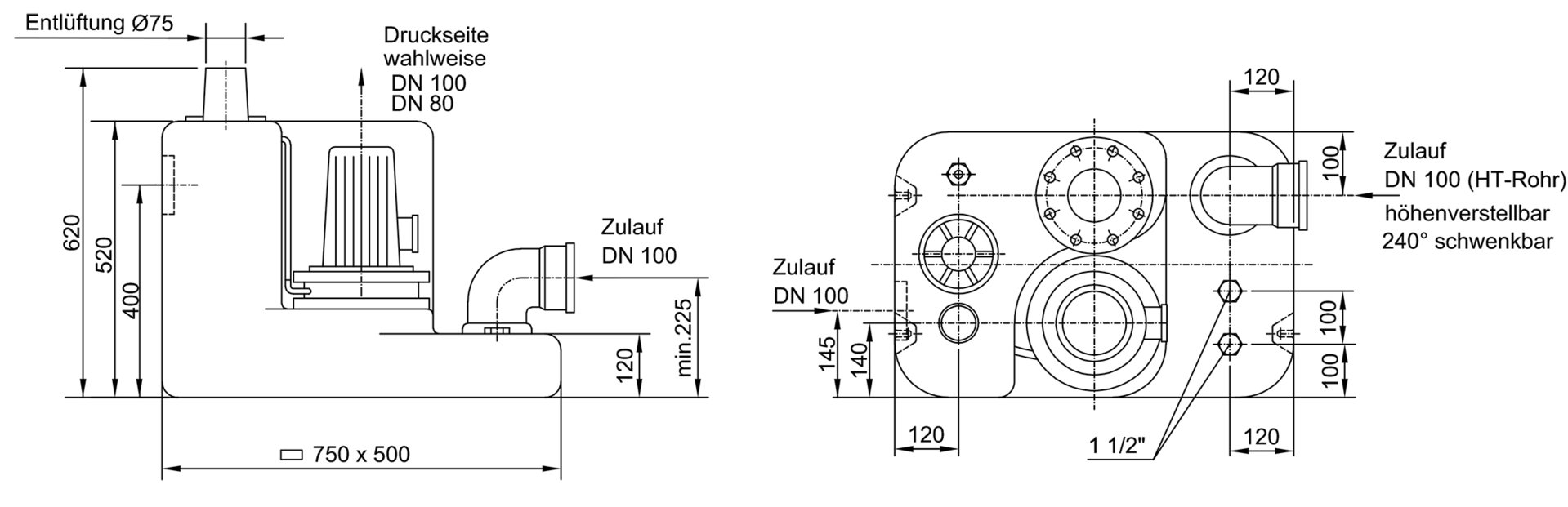 - zur Überflurinstallation in frostgeschützten Räumen unterhalb der Rückstauebene