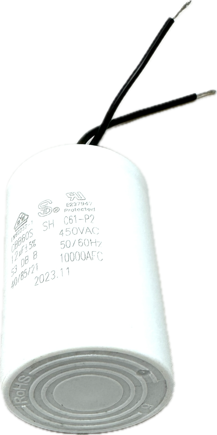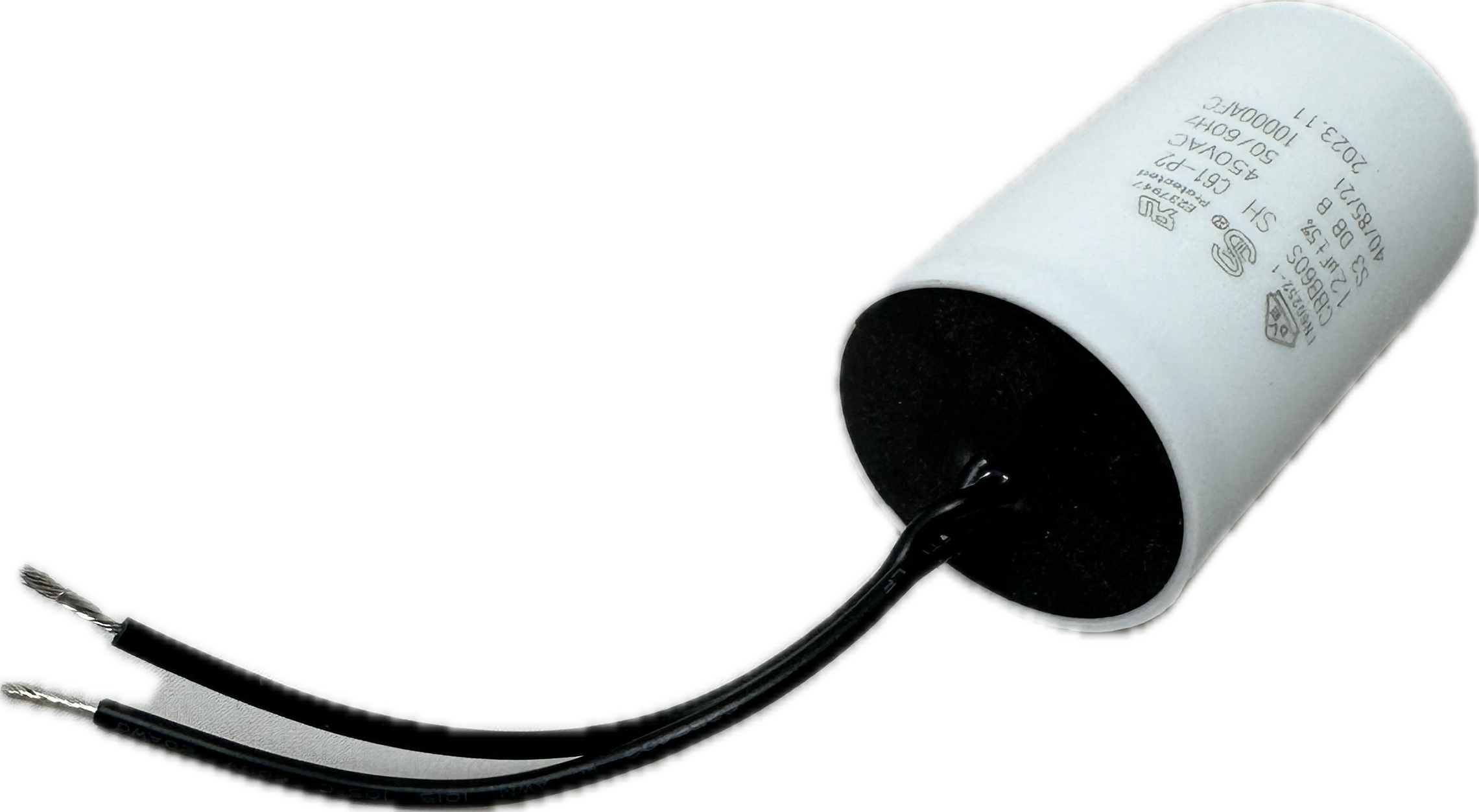 Kondensator ohne Bolzen, 12 µF +/- 5%, S3, 50-60 Hz, für BADU Top II/12 (ab ca. 08/2023) , Super Pump Premium 8, Super Pump Premium 12, Aqua Plus 8, Trend 90, Aqua Plus 11, Trend 110, Aqua Maxi 5, Aqua Maxi 10, Aqua Master 10, Aqua Master 14, BADU EasyFit 9 We., BADU EasyFit 12 We., BADU SuperPro 8, BADU SuperPro 9, BADU SuperPro 11, BADU SuperPro12, BADU 45/6, BADU 46/5, BADU 46/10, BADU 47/5, BADU 47/10, Belstar 7, Belstar 50 M, Belstar 10, Belstar 75 M, AquaViva 8, AquaViva 12, PPL Smart 10, Super-Pump 8 LC, Super-Pump 12 LC, BADU Top II/8 LC, BADU Top II/12 LC, Filterpumpe MP 8 LC, Comfort II/8 LC, Waterstar SP115-1, BluePump 12, SUNVAL 11-M, Whitestar 9, Enviro 11, Pro-Pump 11, BADU Magic II/11 LC, Smart II/11 LC BEHNCKE, Filterpumpe MP 12 LC, Comfort II/12 LC, CP Top 50 LC, als Ersatz für defekte Motorkondensatoren. Abmessungen: 40 x 63 mm, flexible Litzen 100 mm, 10 mm abisoliert.