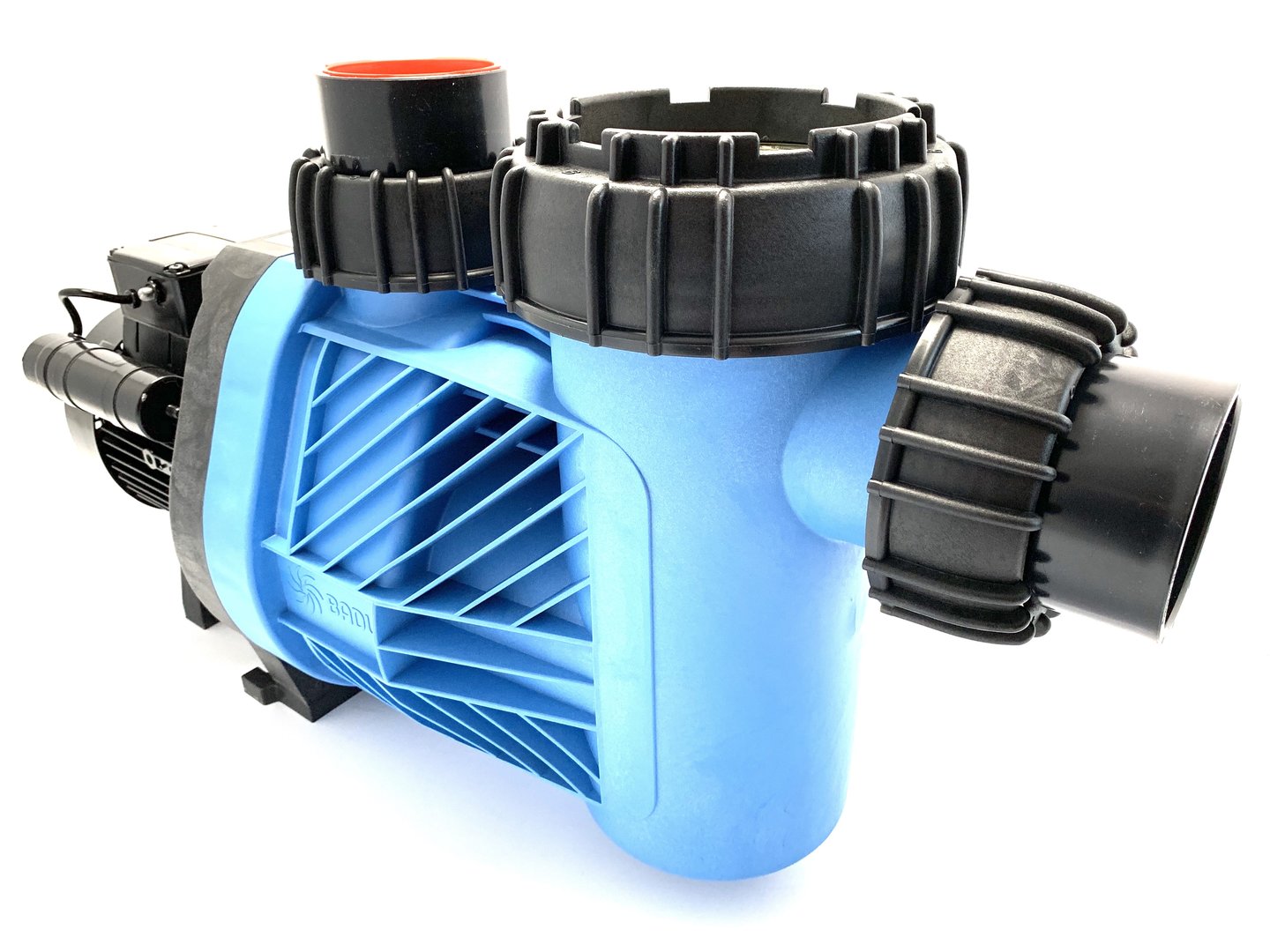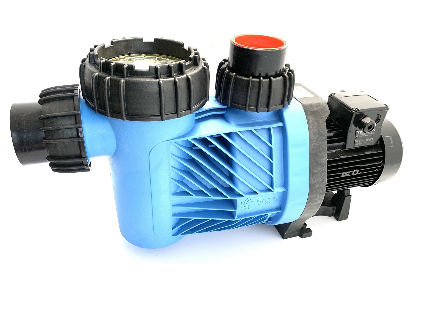 Blockpumpe mit integriertem Fasernfänger. Balg-Gleitringdichtung auf Kunststoff-Laufradnabe montiert. Motor- bzw. Pumpenwelle kommt mit dem Schwimmbadwasser nicht in Berührung! Elektrische Trennung.