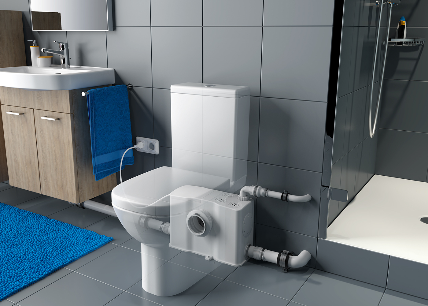 - Einzel WC Hebeanlage zur begrenzten Verwendung im privaten Bereich unterhalb der Rückstauebene, z.B. im Kellerbereich oder bei der Altbausanierung
