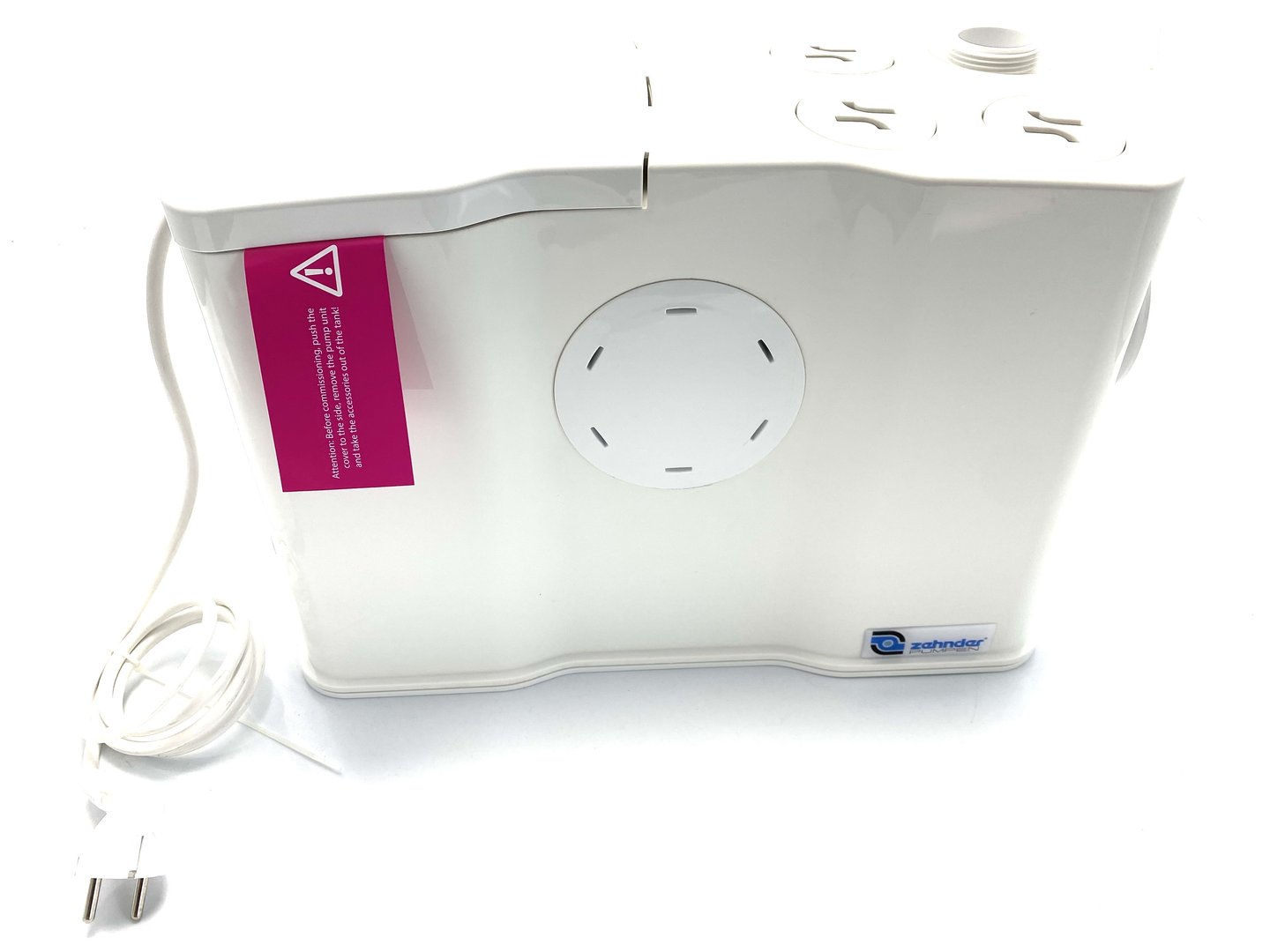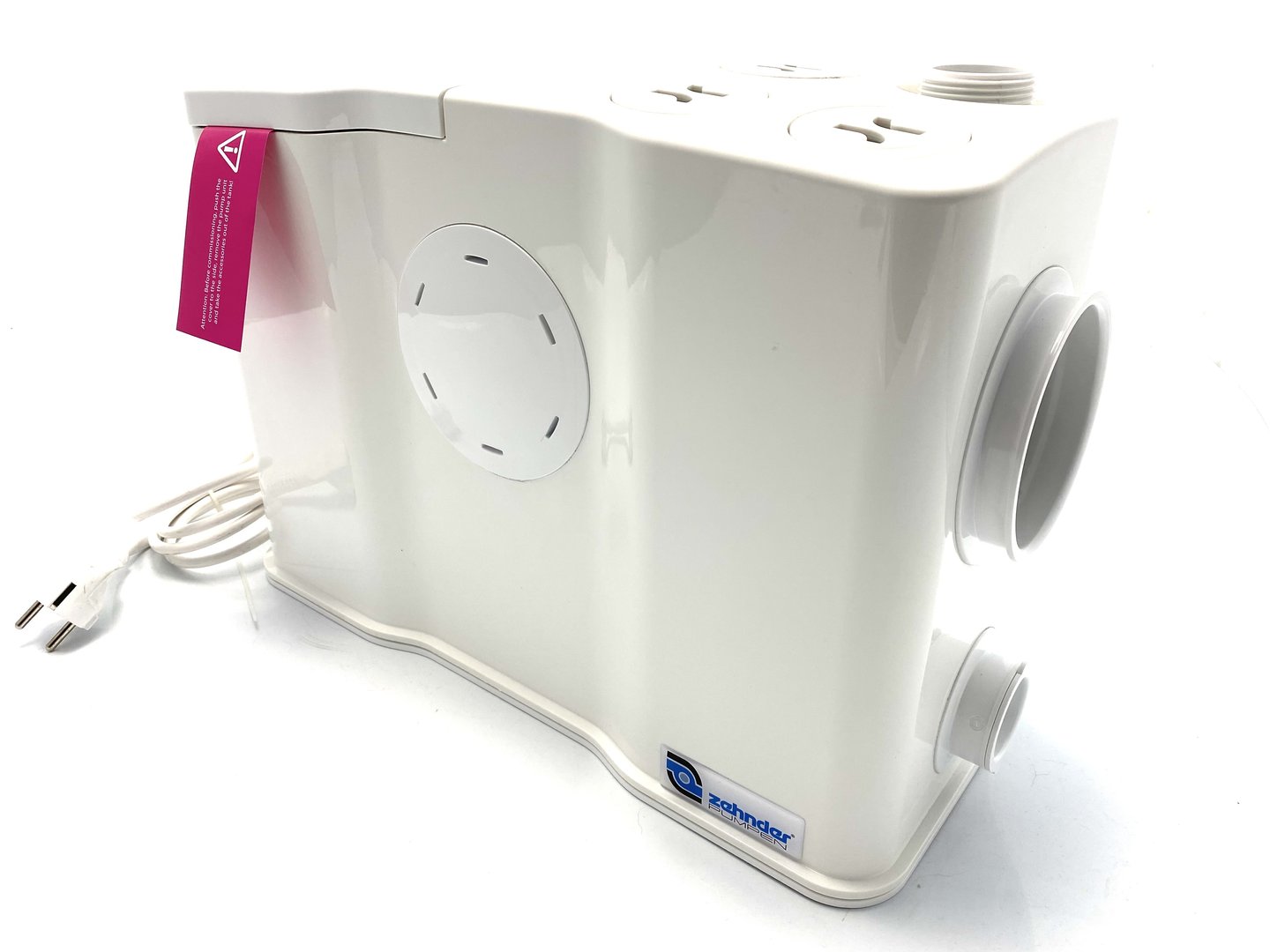 Zehnder Pumpen Einzel WC Fäkalien-Hebeanlage mit Schneidwerkpumpe Microboy E2 zur Überflurinstallation Ausführung Sammelbehälter aus ABS zum Direktanschluss an EURO-Toilette mit minimaler Zulaufhöhe 4 zusätzliche seitliche Zuläufe DN 40 zum Anschluss von Waschtisch, Dusche oder Bidet Behälterentlüftung über Aktivkohlefilter robuste und trocken aufgestellte Wirbelrad-Pumpe mit Schneidwerk aus Edelstahl Alarmsignal bei Störung Notentsorgung ist über leicht zugängliche Motorwelle mit Schlitz möglich Druckabgang 1 ¼“ IG mit integrierter Rückschlagklappe, wahlweise links oder rechts Medientemperatur max. 40°C Schutzgrad IP 54 Ausstattung mit pneumatischer Pumpensteuerung für Einzelpumpen Förderhöhe bis zu 11,8 m Spannung 230 Volt Einsatzgebiete Einzel-WC-Hebeanlage zur begrenzten Verwendung im privaten Bereich nach EN12050-3 unterhalb der Rückstauebene, z. B. im Kellerbereich oder bei der Altbausanierung Die Entwässerungsgegenstände müssen sich im selben Raum befinden. Dem Benutzerkreis muss ein weiteres WC oberhalb der Rückstauebene zur Verfügung stehen. Der zusätzlicher Anschluss von höchstens einem Waschbecken, einer Dusche und einem Bidet ist möglich. Andere Entwässerungsgegenstände dürfen nicht angeschlossen werden. Achtung! der Zulauf der Dusche muss mindestens 180 mm über dem Aufstellniveau der Hebeanlage sein um einen Rückstau in die Dusche zu vermeiden. Lieferumfang steckerfertig montiert mit 1,5 m Anschlusskabel mit Schuko-Stecker akustischer Alarm inklusive TECHNISCHE DATEN Herstellerseite