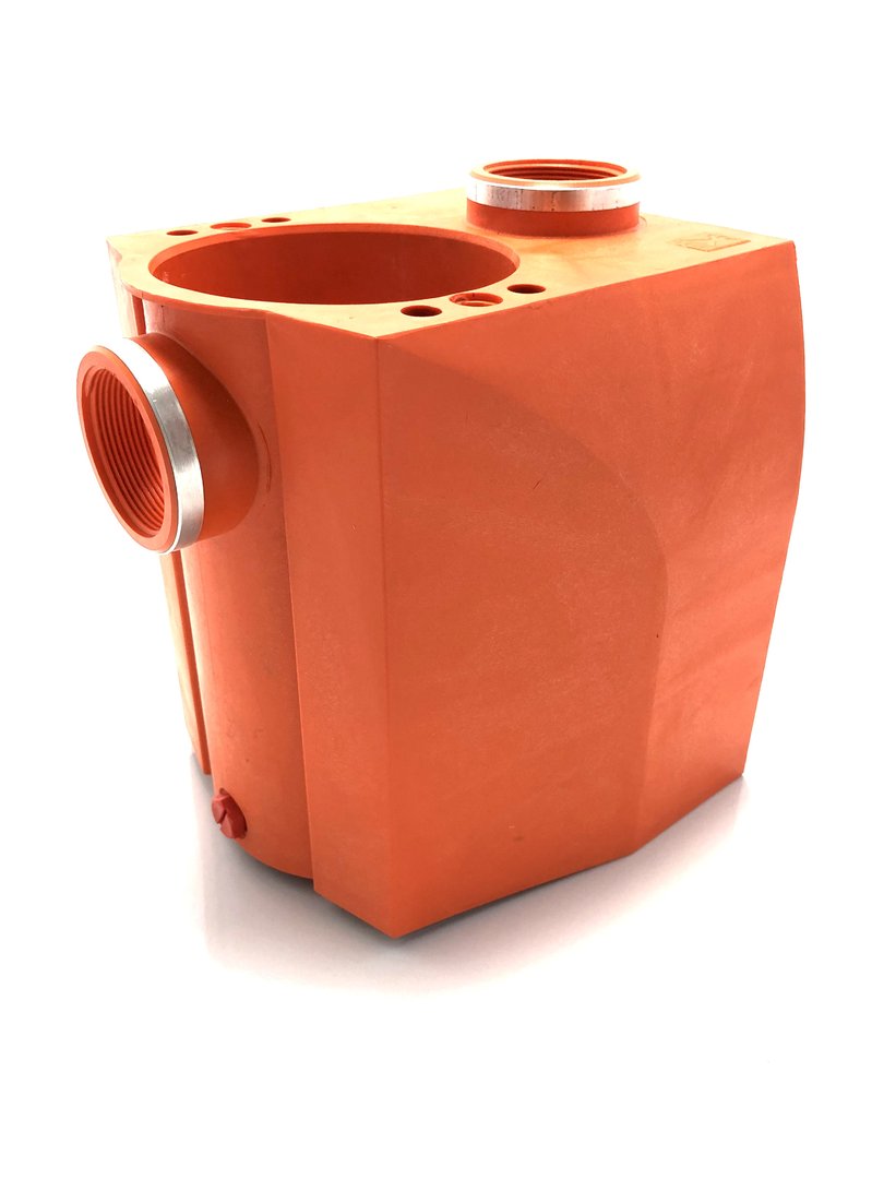Gehäuse komplett, Rp 2 x 2, orange, für BADU 40/22, BADU 40/23, BADU 40/25 G, BADU 40/26 und BADU 40/32, Pos.101, bestehend aus Gehäuse, Saugsieb, Deckel mit O-Ring und Knebeln, Verschlussschraube mit O-Ring