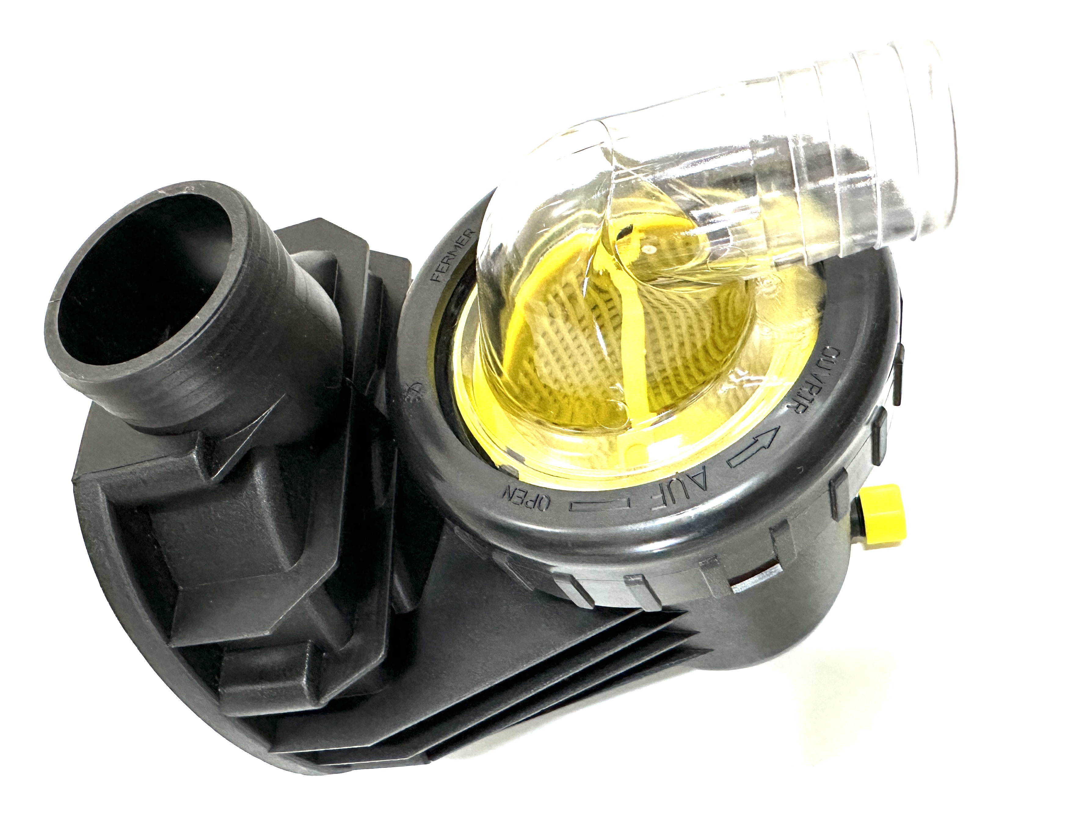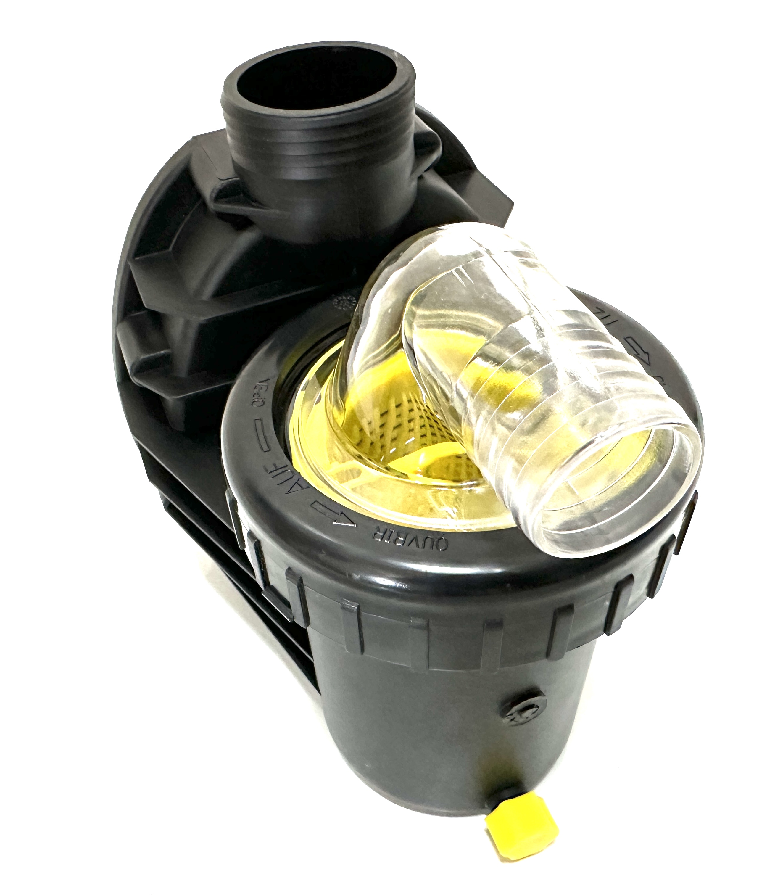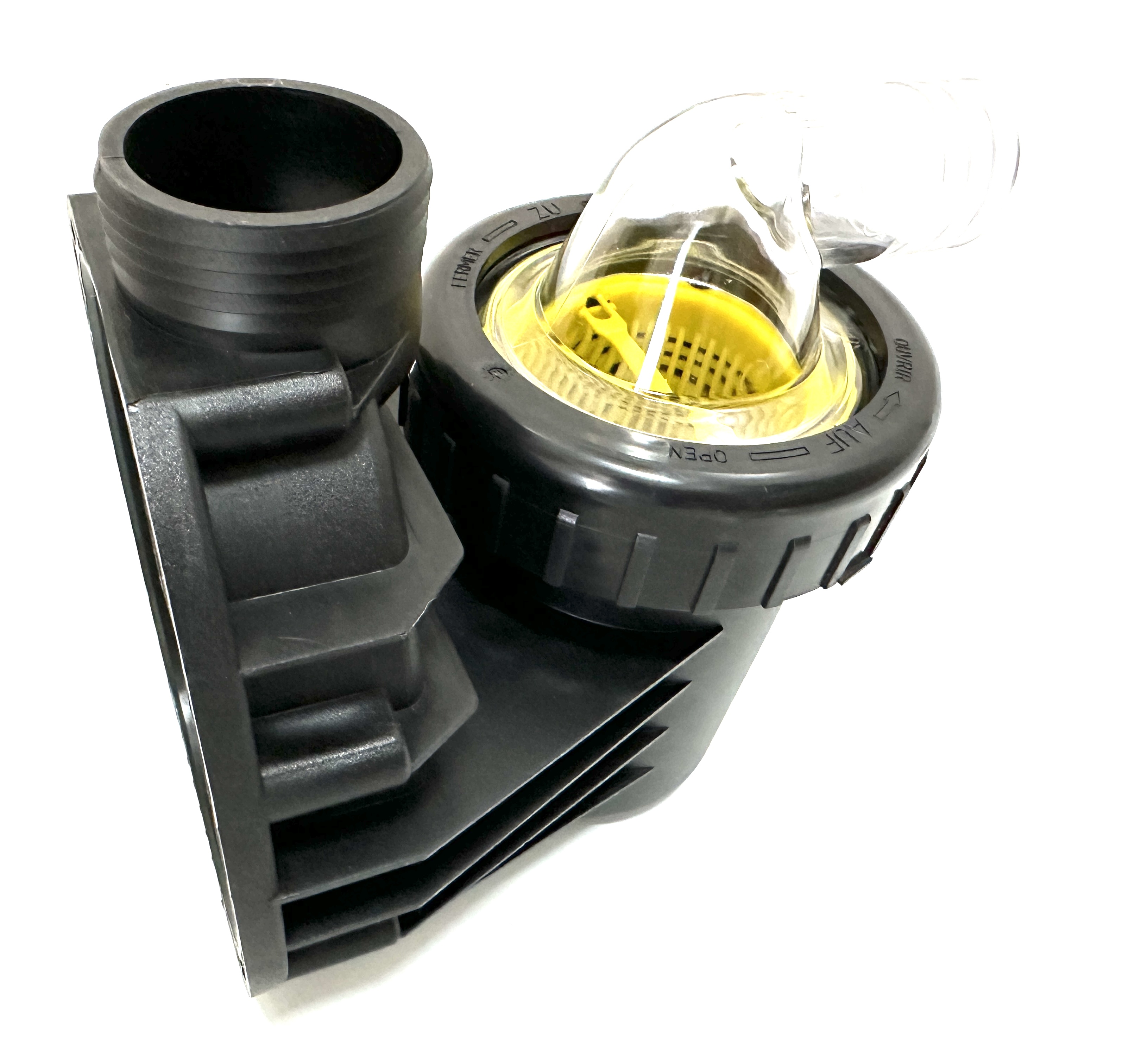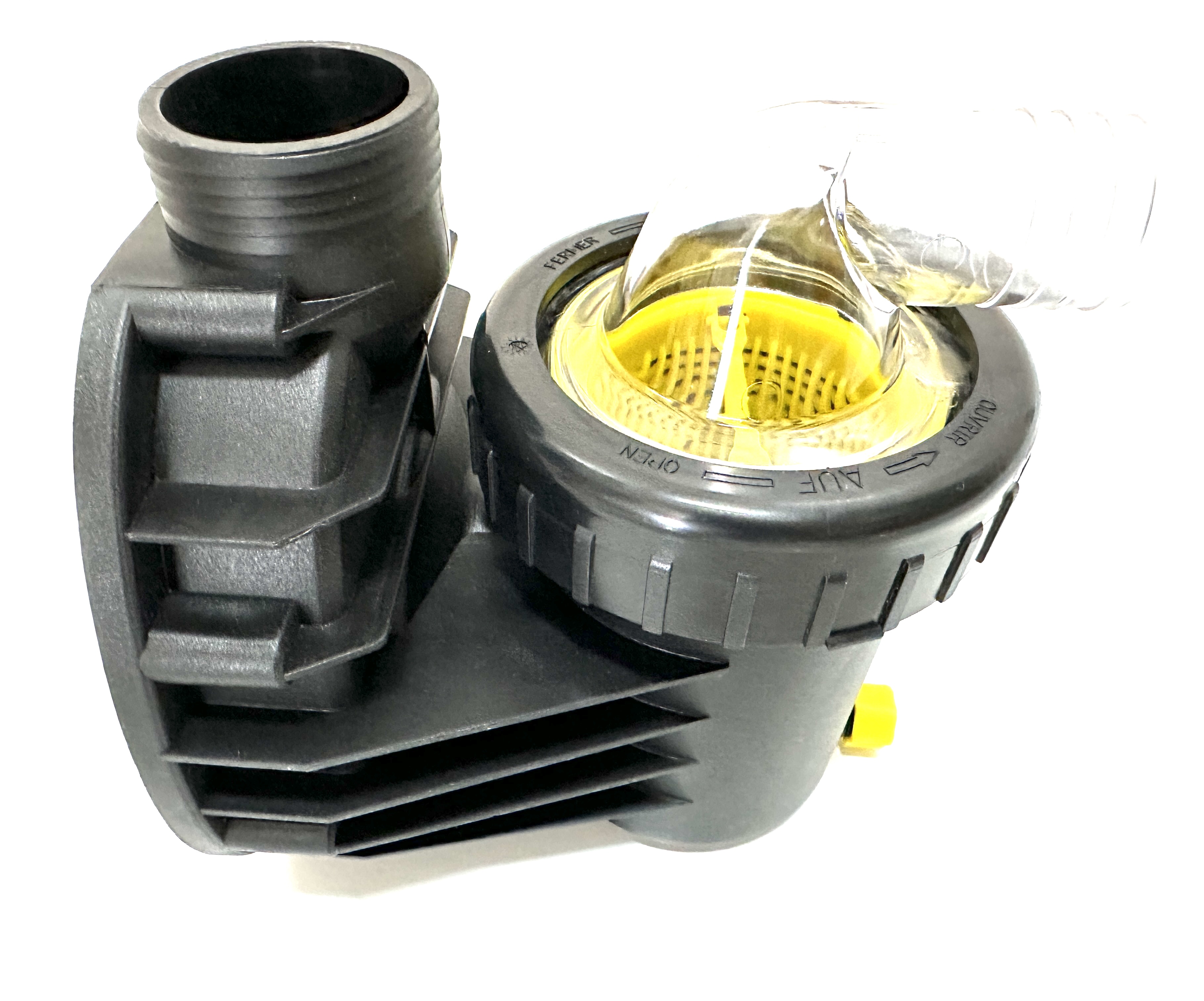 Gehäuse, Pos. 101, Saugsieb, Pos. 143, Klarsichteinsatz transparent mit Schlauchtülle 1 1/2" (d = 38 mm), Pos. 160.1, Gewindering schwarz, Pos.160.2, O-Ring für Deckel, Pos. 412.1, Verschlusskappe gelb, Pos. 582 für alle BADU Picco 5 und BADU Picco II Modelle