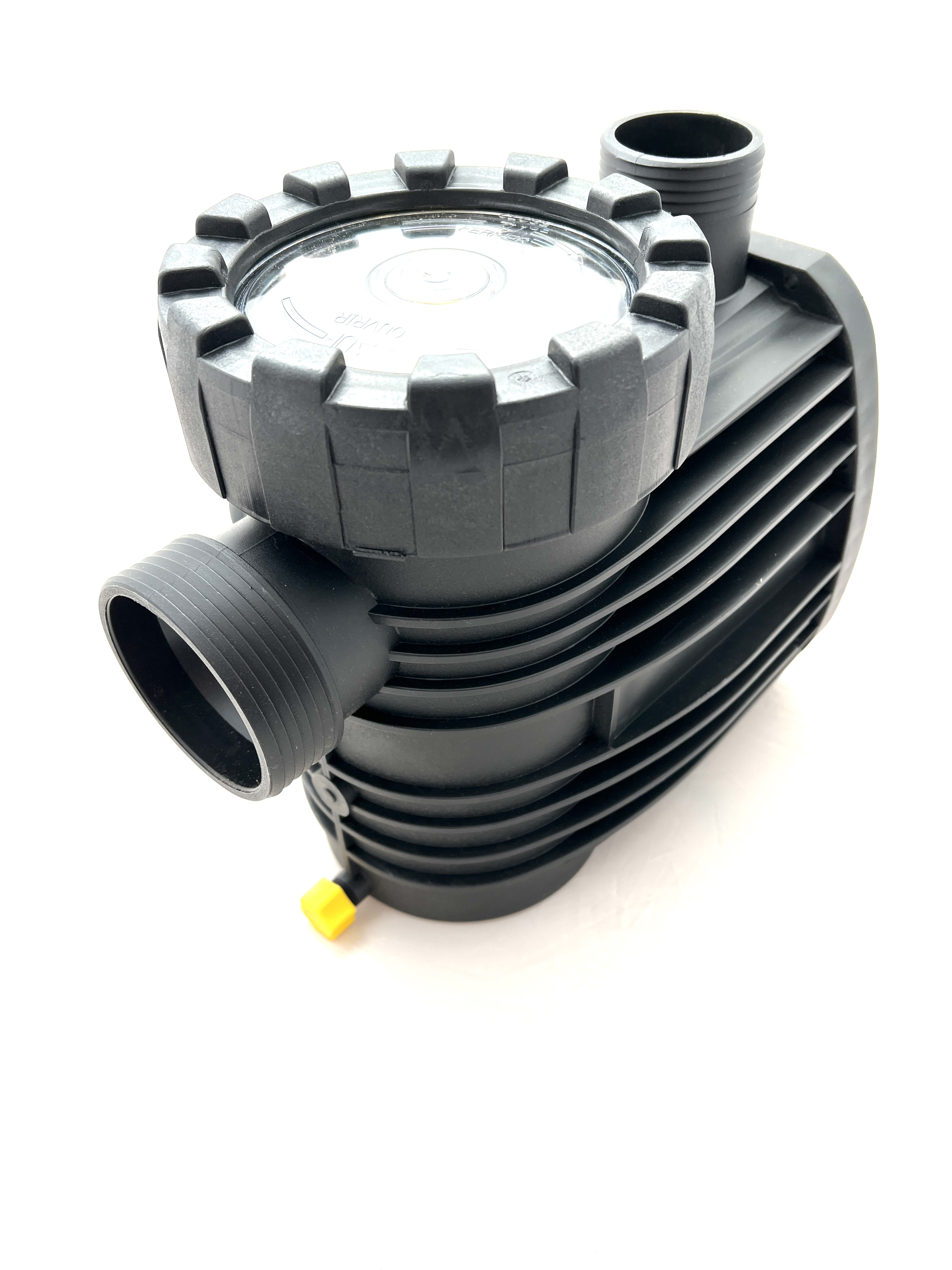 Gehäuse komplett, schwarz, bestehend aus Gehäuse, Saugsieb, Gewindering, Klarsichteinsatz mit O-Ring, Verschlusskappe, für BADU Top S II/8, BADU Top S II/12, BADU Top S II/14, SWIM-TEC Super Pump 8, Super pump 12, Super Pump 14, BADU Eco Touch-Pro, Meranus Filterpumpe MP 8, MP 10, MP 12, MP 14, Pos. 101