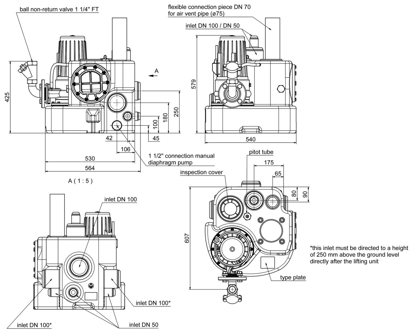 - zusätzliche Anschlüsse 1 ½“ für Handmembranpumpe