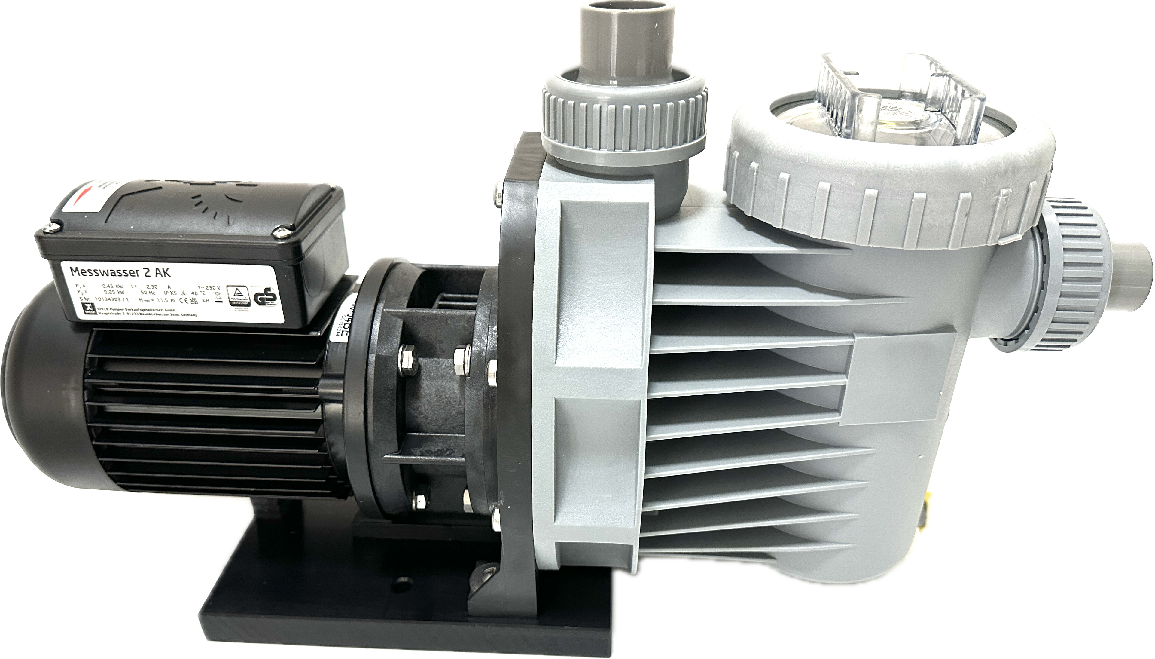 Die selbstansaugende Schwimmbad-Messwasserpumpe in AK Ausführung ist eine Sonderentwicklung mit korrosionsfesten Werkstoffen für die kontinuierliche Analyse von Badewasser in öffentlichen Bädern. Im Kommunal- oder Hotelbad sind Messungen für eine intakte Wasserhygiene von großer Bedeutung und genauestens geregelt. So müssen zum Beispiel der pH-Wert, die Chlorkonzentration und die Redoxspannung durch Messgeräte laufend überwacht werden.
