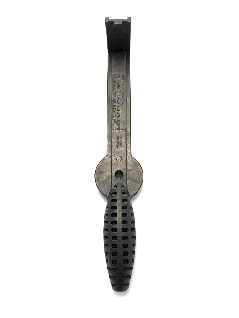 Mit der Universal-Öffnungshilfe lässt sich der Gewindering durch Ausnutzen der Hebelwirkung sicher, mit geringem Kraftaufwand und ohne das Risiko von Beschädigungen öffnen.