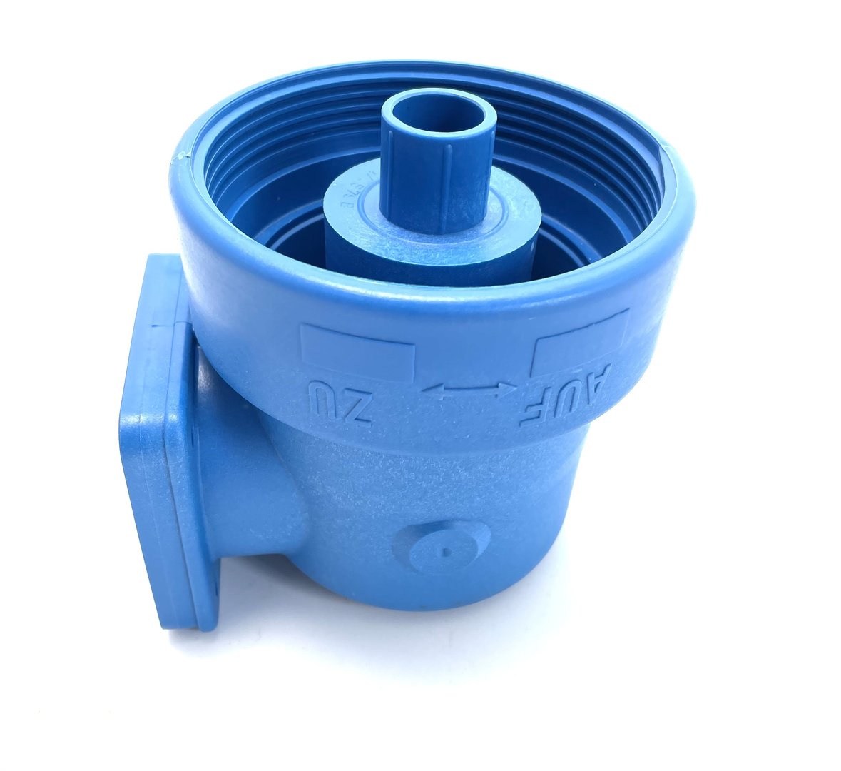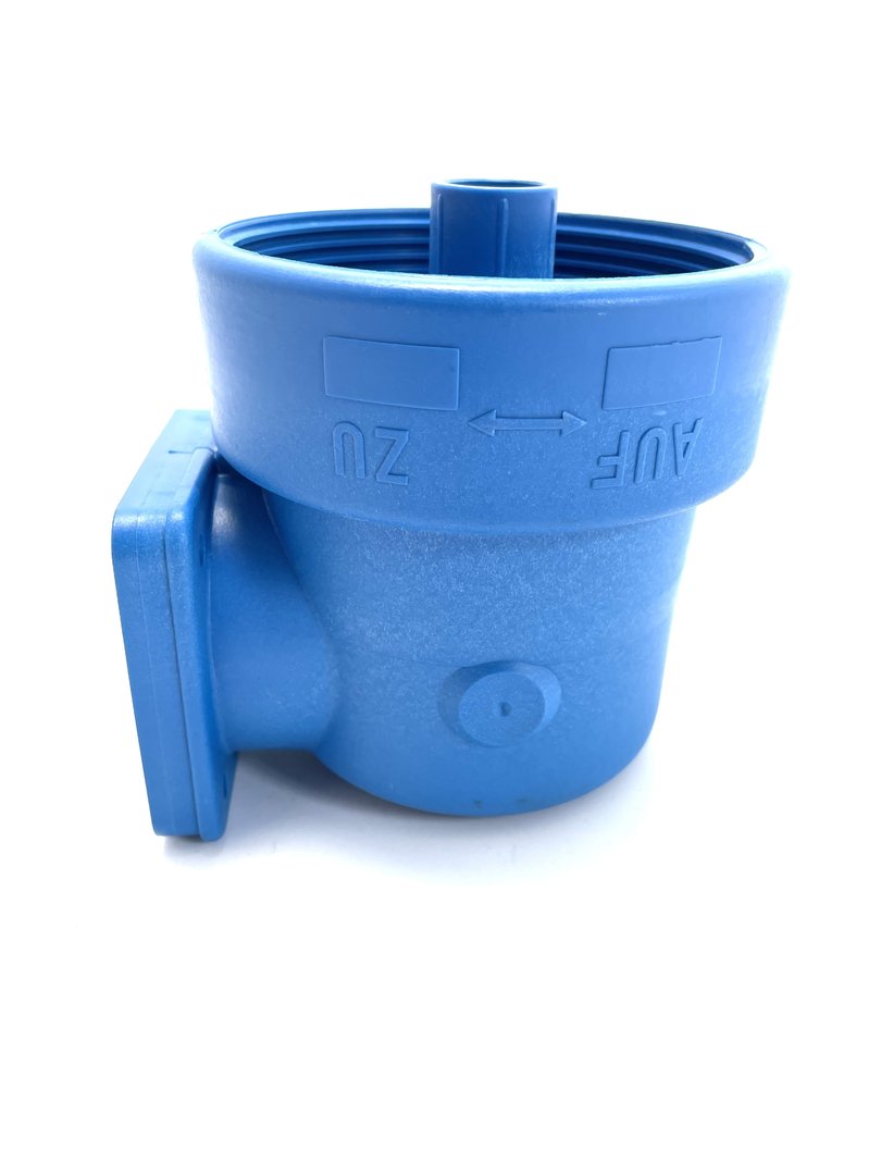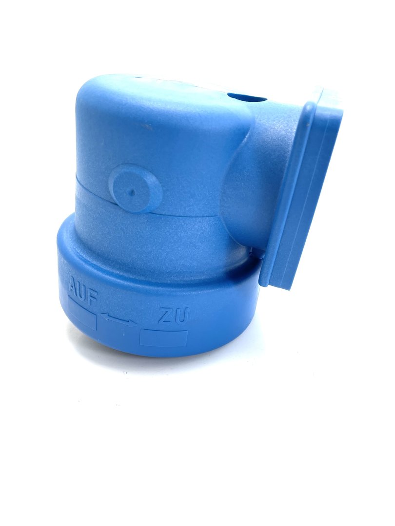 Oberteil, W 2578, blau, mit Messing Entlüftungsschraube für den Speck BADU Schutzfilter SF Typ I, für die Hausinstallation.