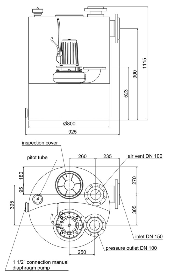 - zusätzlicher Anschluss 1 ½“ für Handmembranpumpe