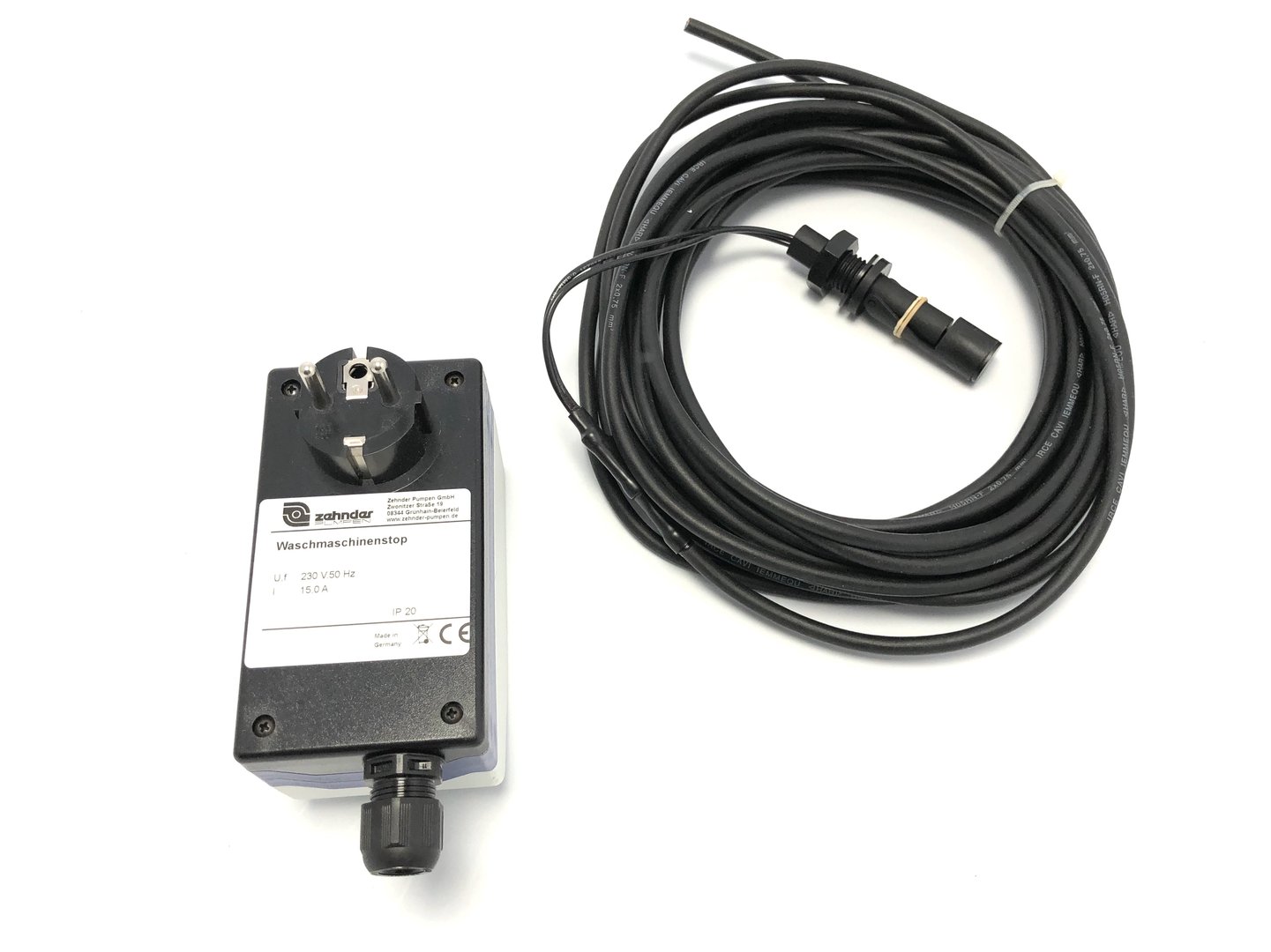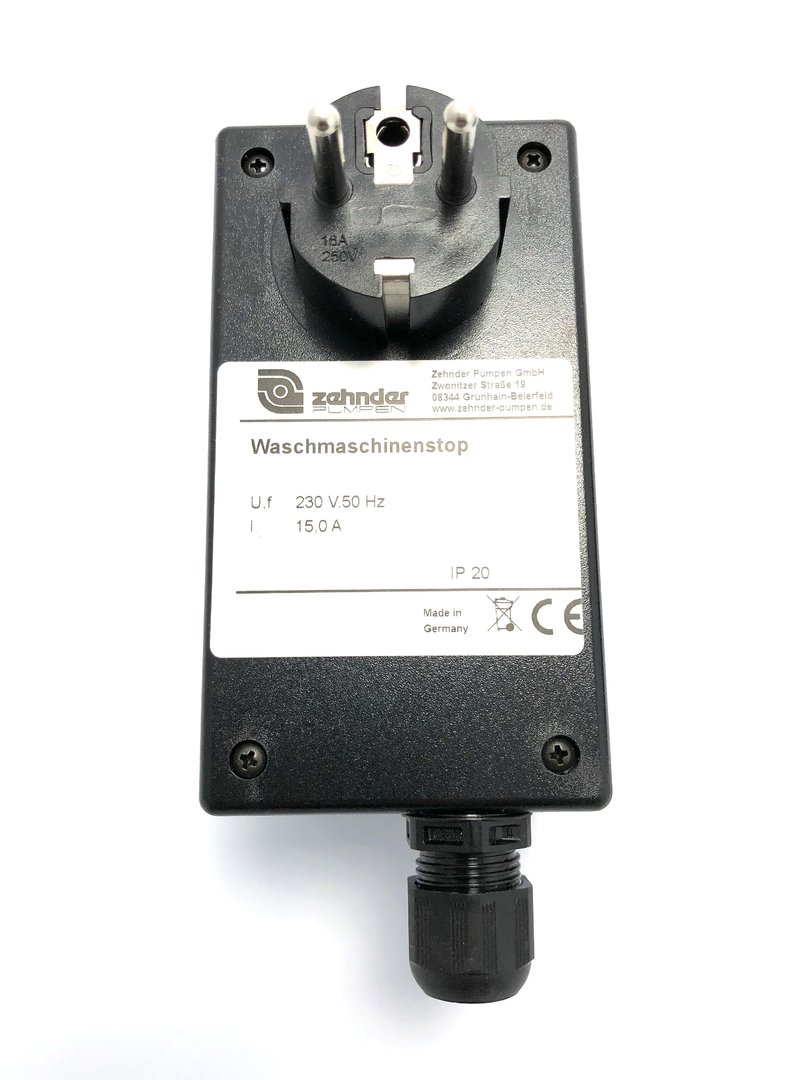 Steigt der Flüssigkeitspegel in der zu überwachenden Hebeanlage auf einen kritischen Stand an (Schwimmerschalter gibt Kontakt), wird die angeschlossene Waschmaschine stromlos geschaltet.