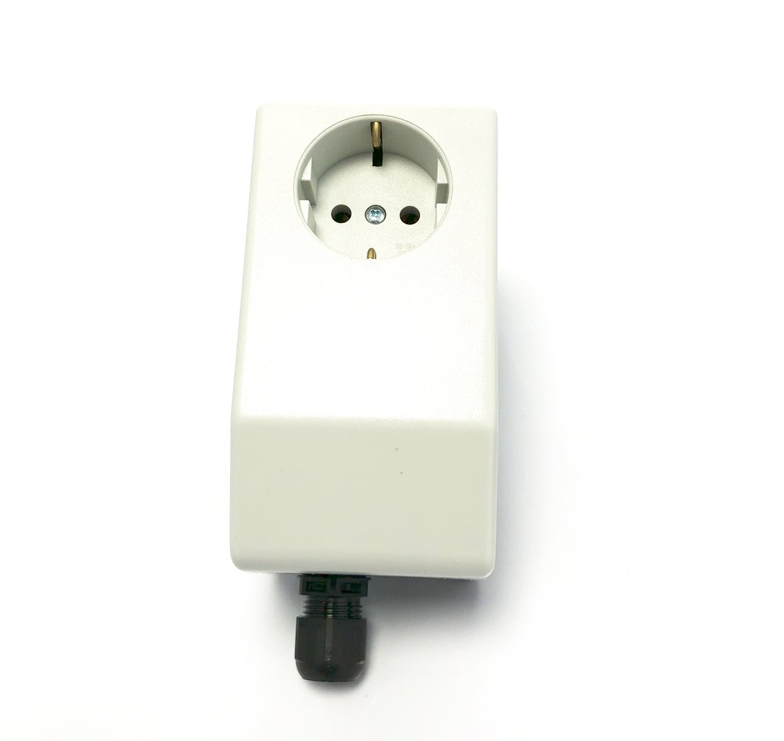 Der Stecker der Waschmaschine wird in die Steckdose des Schaltgerätes und dieses in die Netzsteckdose gesteckt.