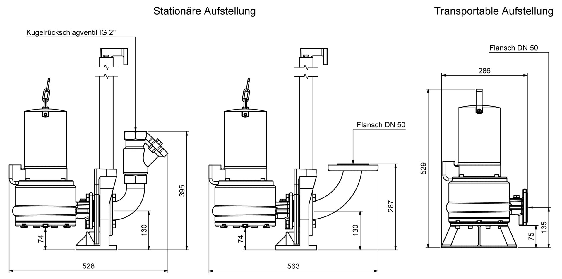 - Abwassertauchpumpe mit hohem Wirkungsgrad aus Grauguss in explosionsgeschützter Ausführung für transportablen und stationären (Kupplungsfußsystem) Einsatz